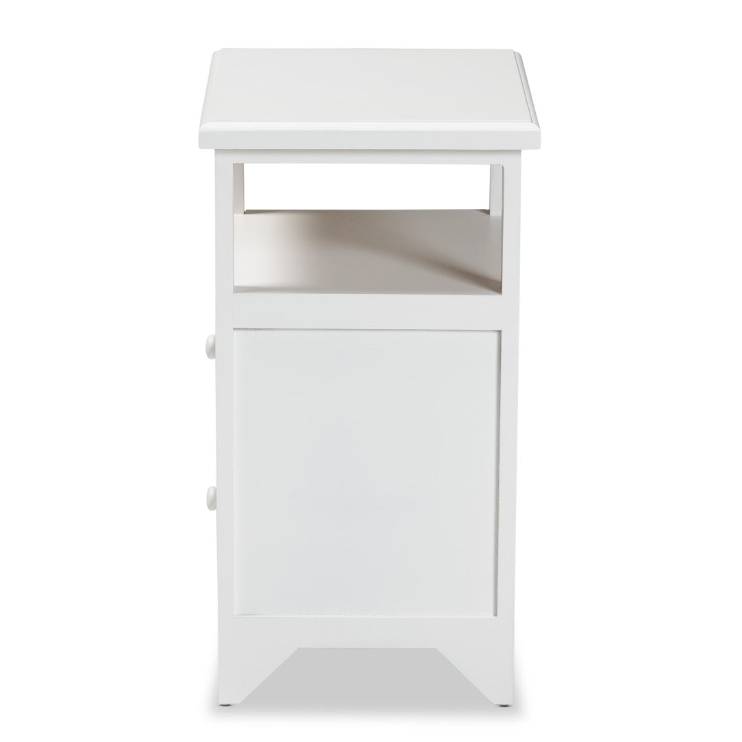 Refresh your living space with the Karsen end table — a sleek, modern accent piece that blends clean lines with practical storage. Crafted from durable paulownia wood and finished in a crisp white, this fully assembled end table adds contemporary texture through inset paneling and round drawer knobs, making it an effortless fit beside sofas, chairs, or in a bedroom.