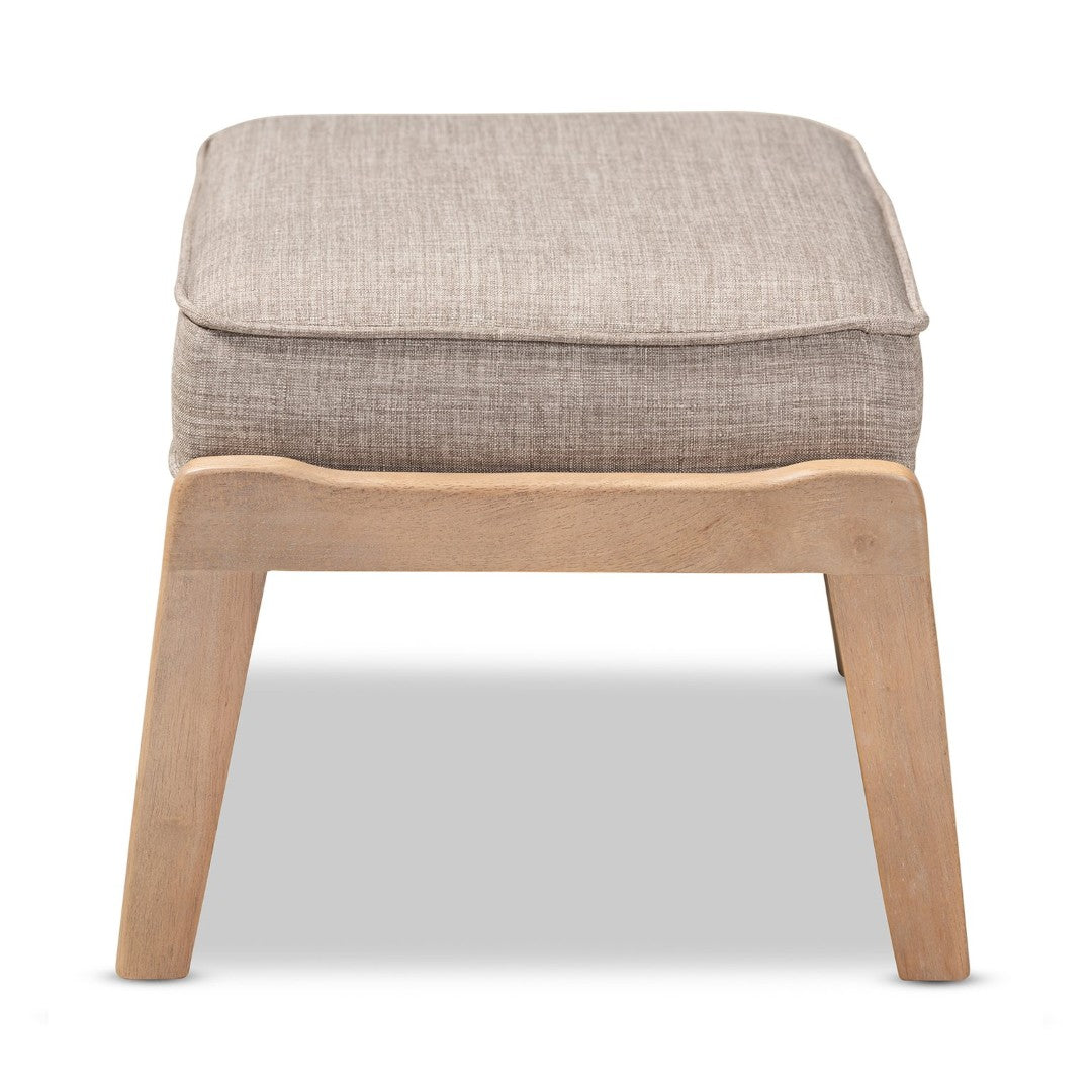 Bring mid-century charm and modern comfort to your living space with this stylish, compact ottoman. Its low-profile silhouette, angled legs, and light grey upholstery create a versatile piece that functions equally well as extra seating, a footrest, or an accent in your entryway or lounge. The combination of a foam-padded seat and a sturdy antique oak–finished rubberwood frame delivers both comfort and lasting stability.
