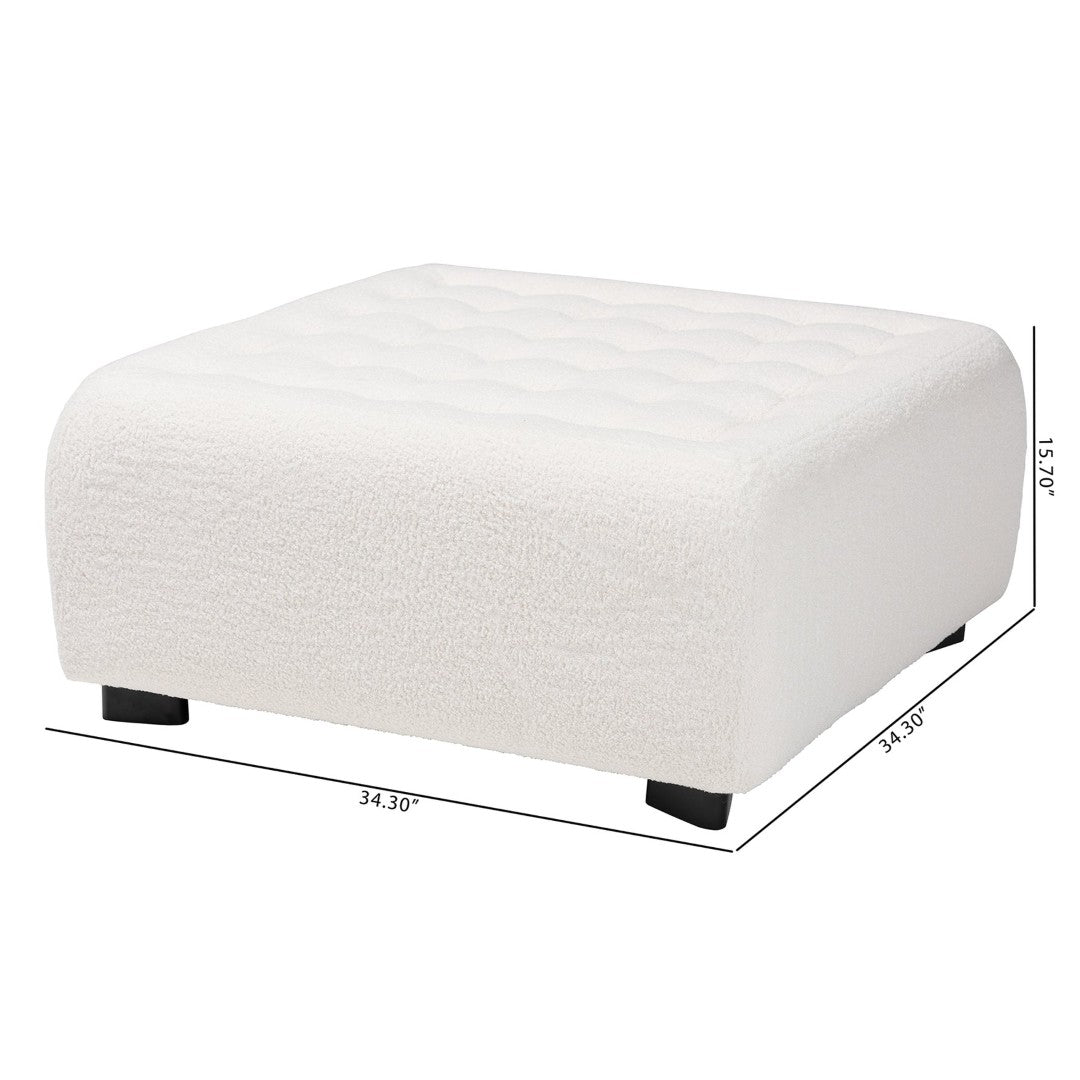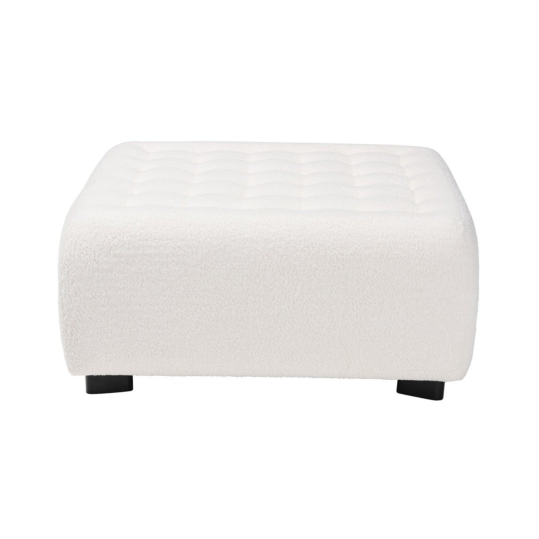 Bring a touch of modern luxe to your living space with the Athena ottoman — a versatile, sculptural piece that blends comfort and contemporary design. Upholstered in plush ivory boucle and built on a solid wood frame, this square ottoman works equally well as extra seating, a footrest, or a low-profile coffee table when paired with a tray. Its grid-tufted cushion and minimalist black-finished wood feet create a clean, geometric silhouette that complements modern and transitional interiors.