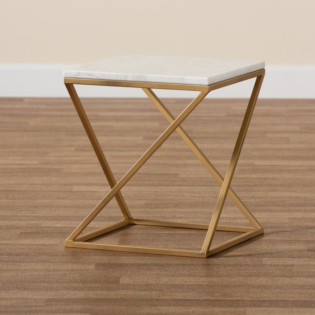 Add instant luxury to any room with the Hadley end table — a sleek, modern accent that pairs a luminous marble tabletop with a gold-finished metal base. Its geometric, openwork frame keeps the look light and airy while the square marble surface provides a clean, sculptural focal point. Fully assembled and thoughtfully scaled, this piece blends contemporary design with practical function for living rooms, bedrooms, or entryways.