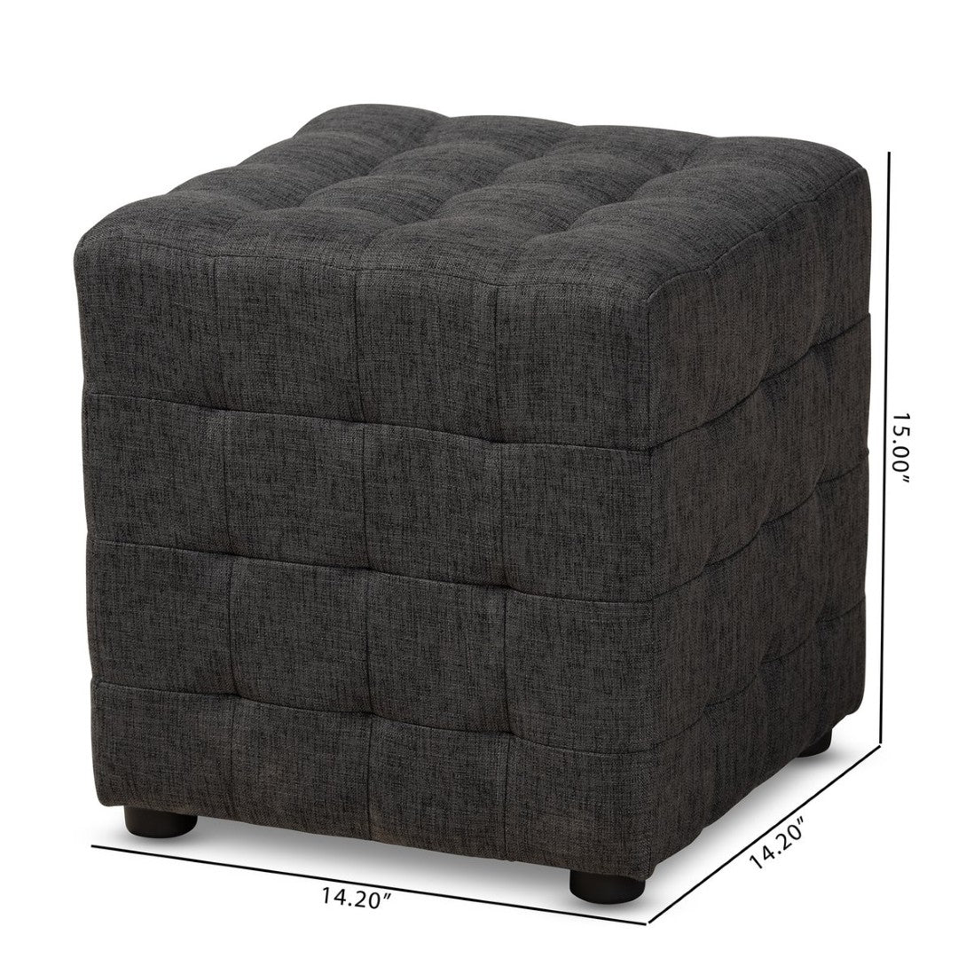 Give your living space a clean, contemporary update with this pair of tufted cube ottomans — designed for style, comfort, and everyday versatility. Upholstered in soft, durable dark grey polyester with biscuit tufting on all sides, these compact ottomans function as extra seating, a footrest, or an informal side table. Built on a sturdy wooden/MDF frame with black plastic feet and arriving fully assembled, they offer effortless integration into modern and transitional interiors.