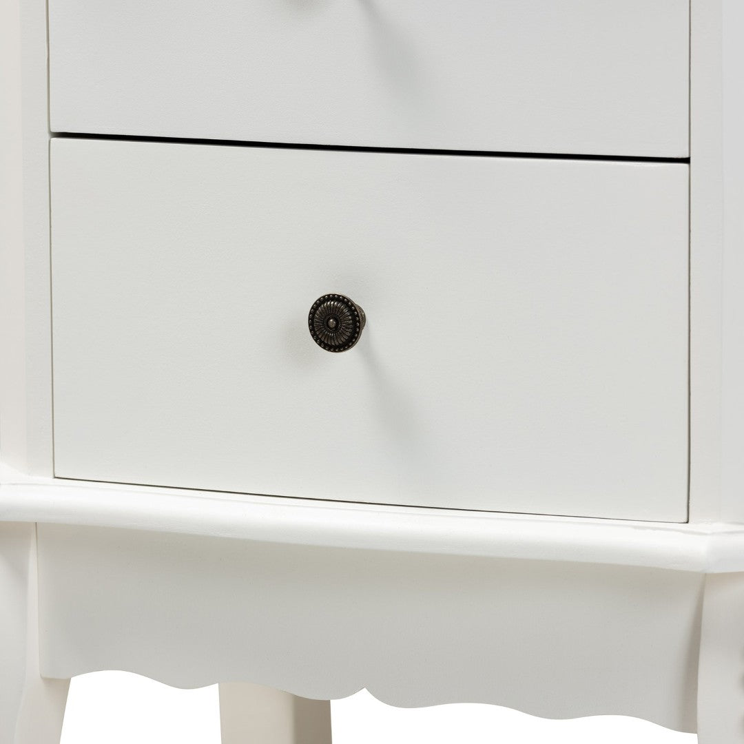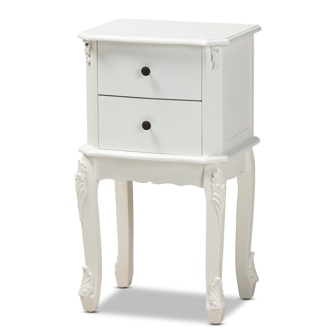 Add timeless French-inspired charm to your living space with this elegant two-drawer end table. Designed with clean lines, classic molding, and cabriole legs, it combines refined aesthetics with practical storage—ideal beside a sofa or bed to keep essentials organized while enhancing traditional or transitional interiors.