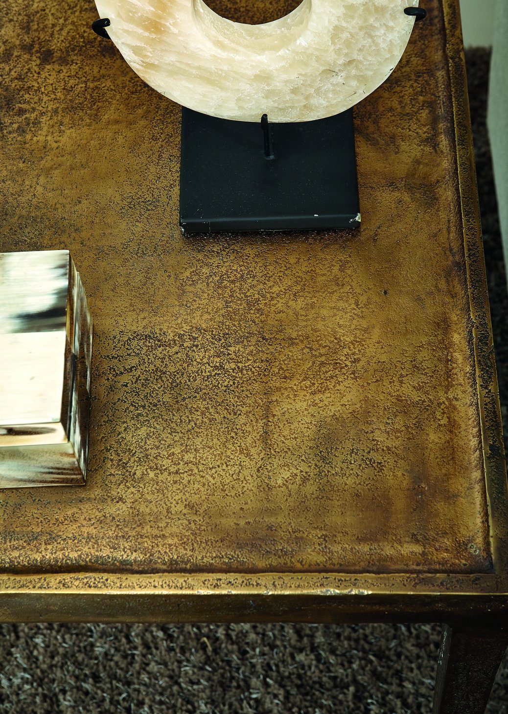 Elevate your living space with a refined accent piece that blends vintage glamour and modern minimalism. This cast aluminum end table pairs a warm vintage brass finish with clean lines and a gallery-style top, making it a versatile addition beside sofas, chairs, or in entryways — perfect for adding subtle texture and timeless elegance to any room.