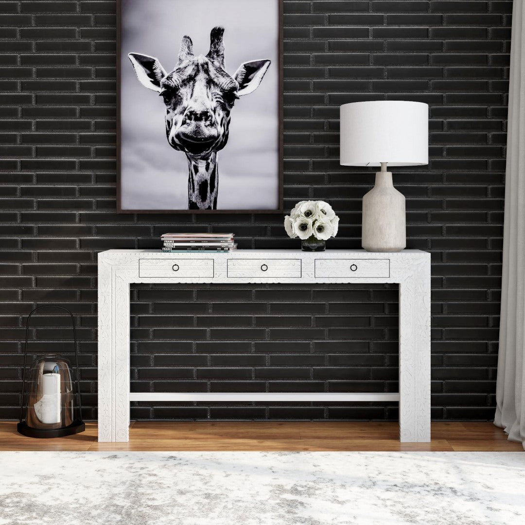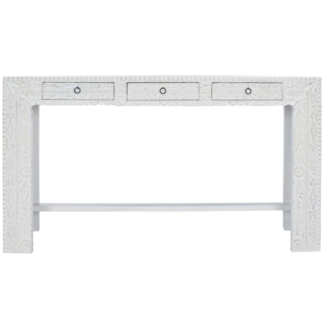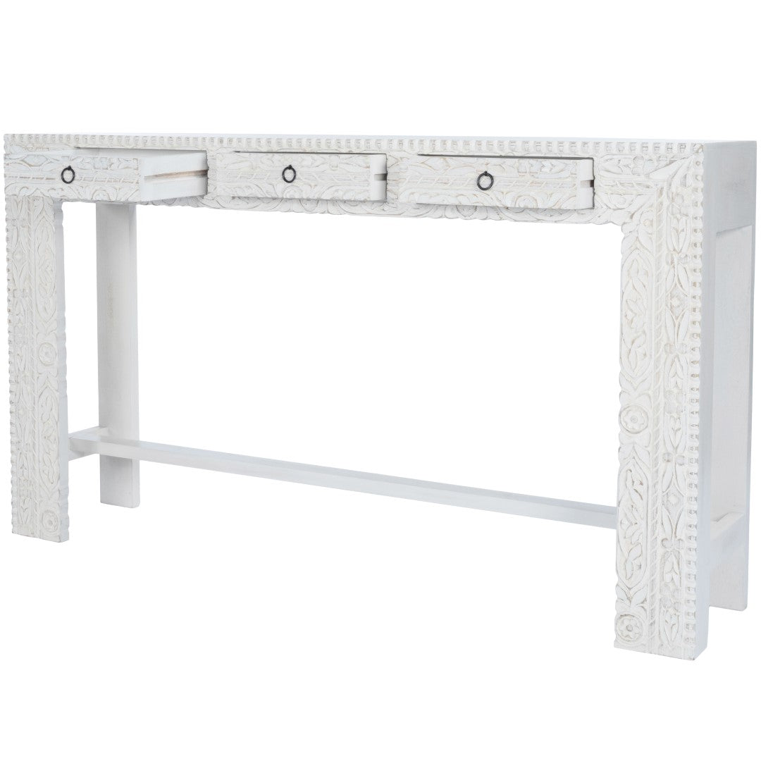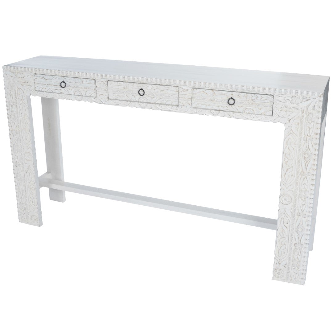 - Feature 3: Bright whitewashed finish over natural mango wood