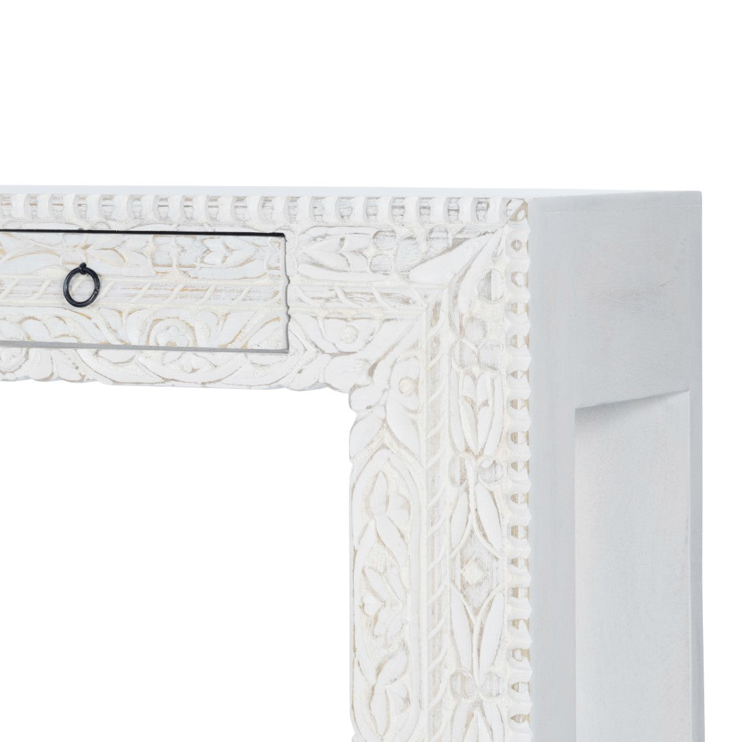 - Feature 1: Gorgeous solid mango wood construction with hand-carved detailing on the front