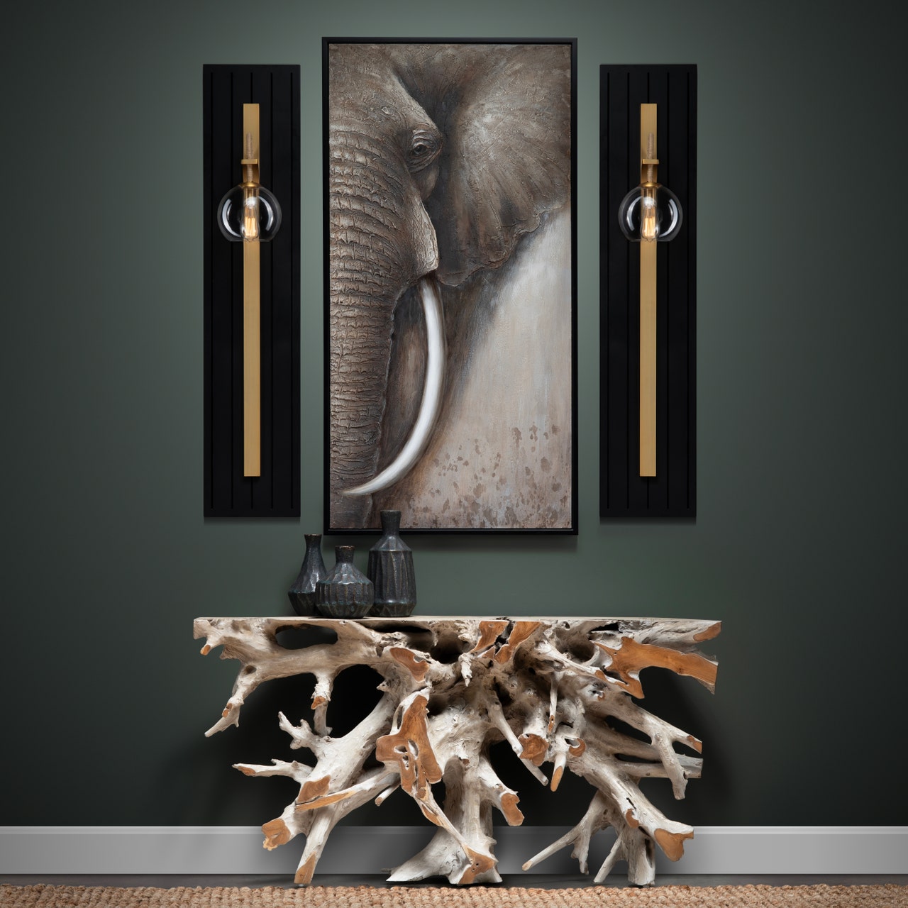 - Dimensions: CVFDR1019 Tiga Light Natural Teak Root Console Table - 16.00w x 64.00d x 31.00h