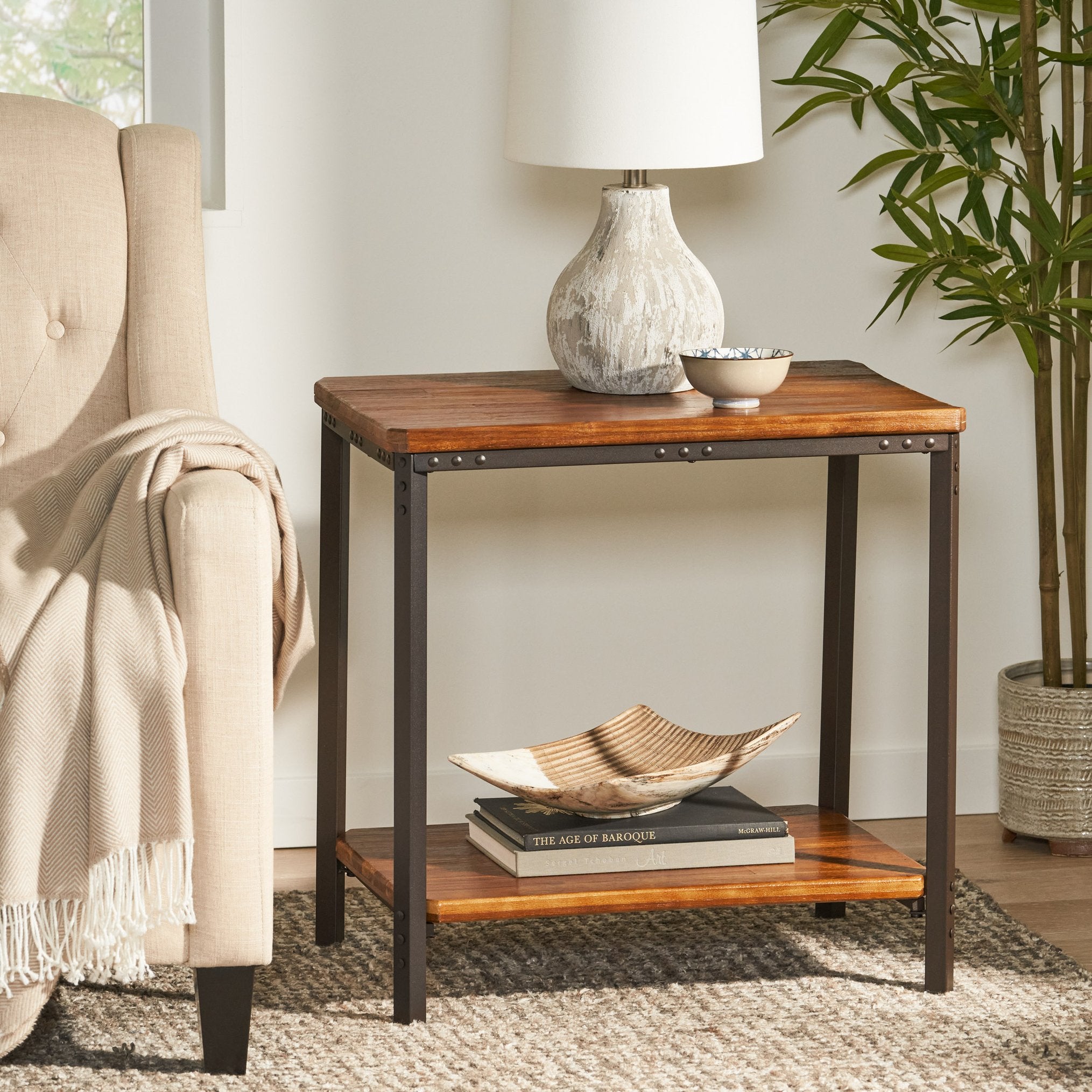 Bring rustic warmth and industrial edge to your living space with this versatile end table. The Ronan end table blends solid hardwood construction with sturdy iron legs for a durable, stylish piece that works as a sofa-side table, extra kitchen surface, or display stand. Its compact footprint and lower shelf provide practical storage without sacrificing design.