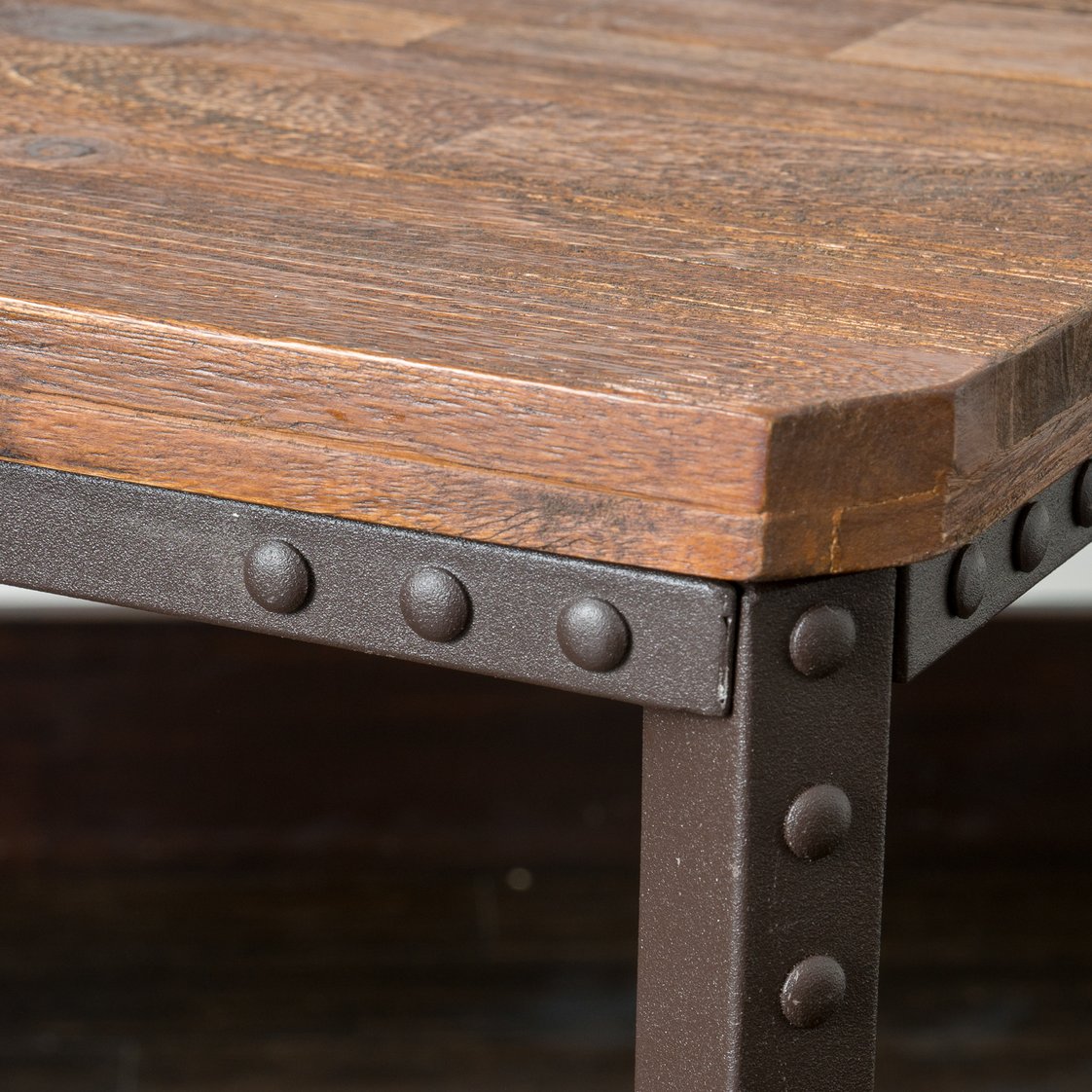 - Materials: Solid hardwood top with rustic finish and iron metal legs for industrial character and stability