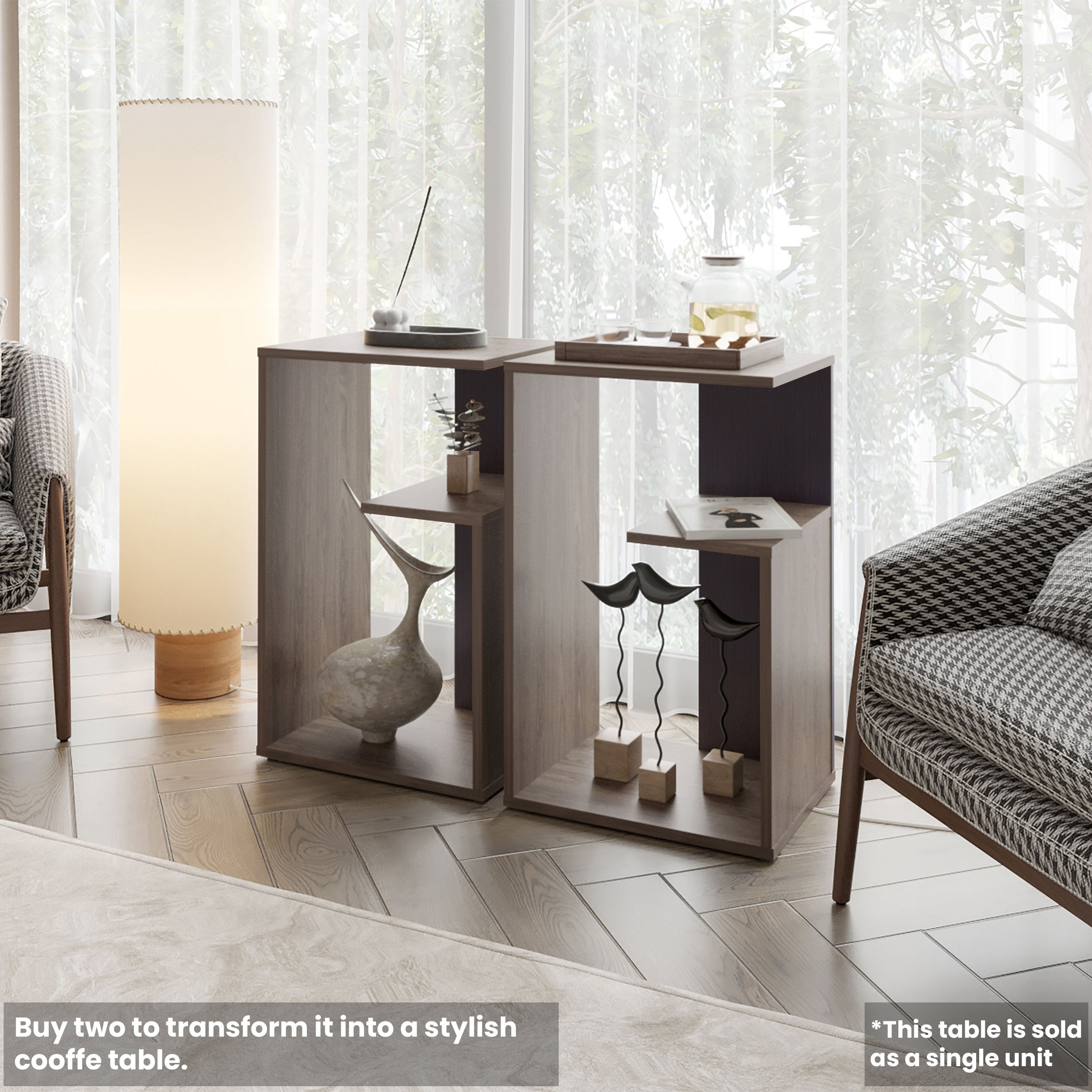 Bring modern functionality and warm finishes to any room with this compact side table. Designed for versatile use as a nightstand, coffee table, or accent table, it combines durable melamine construction with open storage to keep essentials within easy reach while enhancing your décor.
