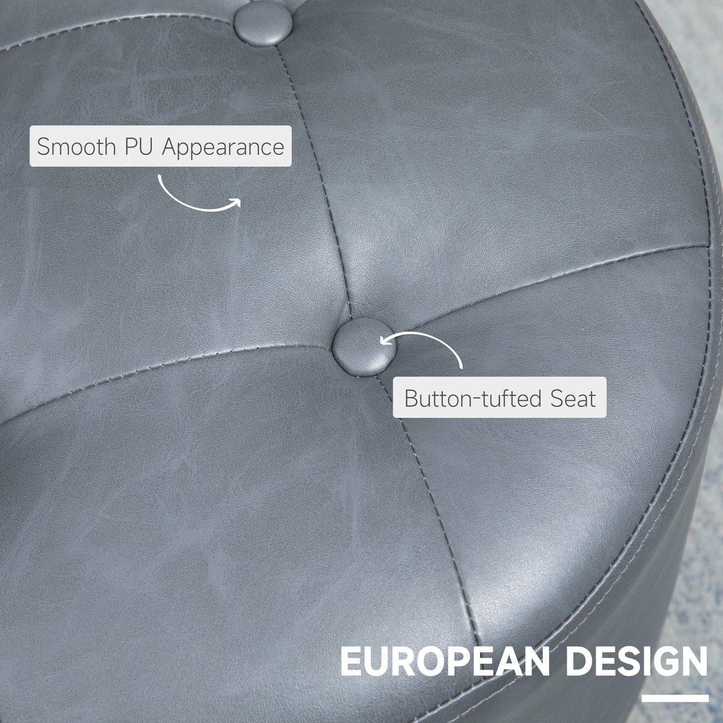 Add a touch of modern convenience to your living space with this 360° swivel footstool. Upholstered in easy-care grey PU leather and cushioned with thick high-density sponge, it functions as a comfortable footrest, extra seat, or compact vanity stool while its solid steel base delivers dependable stability. Sleek, versatile, and simple to maintain, this ottoman blends style and function for bedrooms, living rooms, or dressing areas.