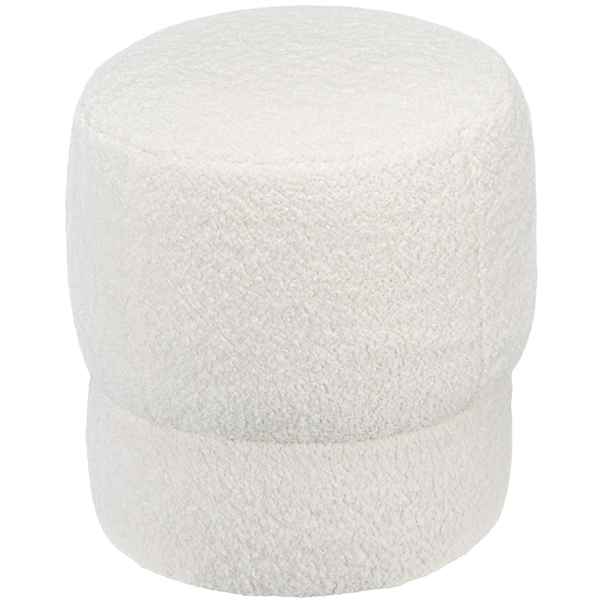 Add a touch of cozy modern style to your living space with this compact round ottoman. Upholstered in soft teddy fleece and filled with resilient foam, it works beautifully as a footrest, extra seat, or a vanity stool. The clean, minimalist silhouette and cream-white finish blend with contemporary and casual décors, while the steel frame and floor-friendly feet provide reliable support and protect surfaces.