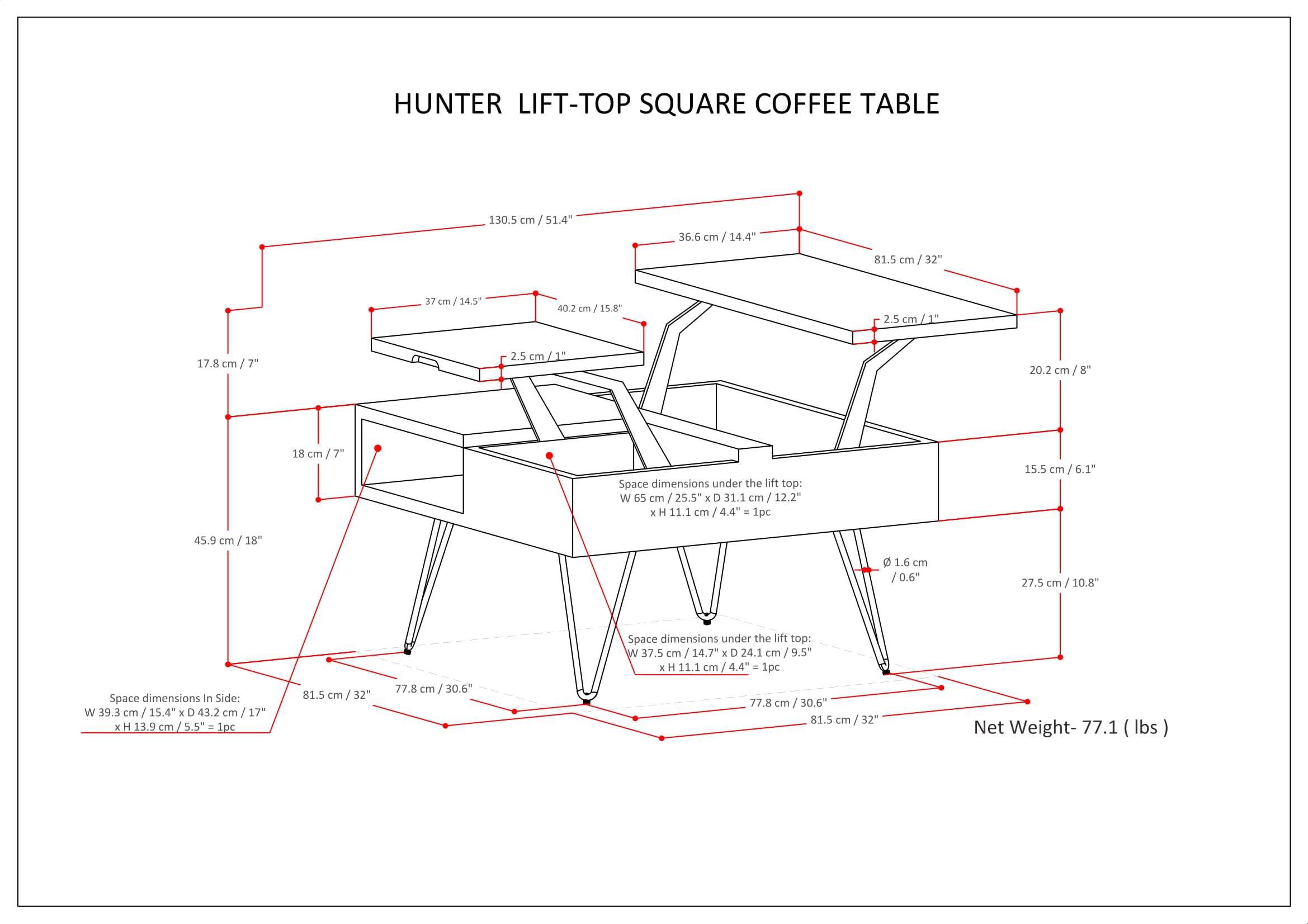 - Storage & Function: Split lift-up top revealing a large hidden storage compartment plus one open compartment for easy access to frequently used items.
