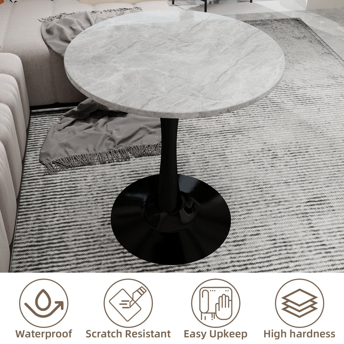 - Measuring 27.56 inches in diameter and 28.35 inches in height, the table focuses on functionality. The faux - marble top resists spills and scratches, and the black pedestal provides a solid foundation. Use it as a landing spot for keys and mail in an entryway, a plant stand that’s easy to wipe down, or a temporary workspace for laptops. It adapts to various needs, proving its practical worth in any home area.