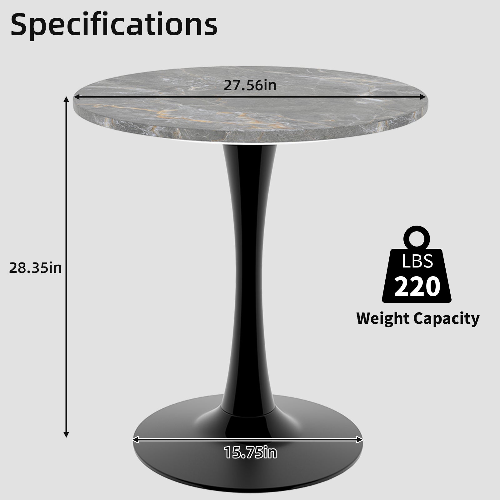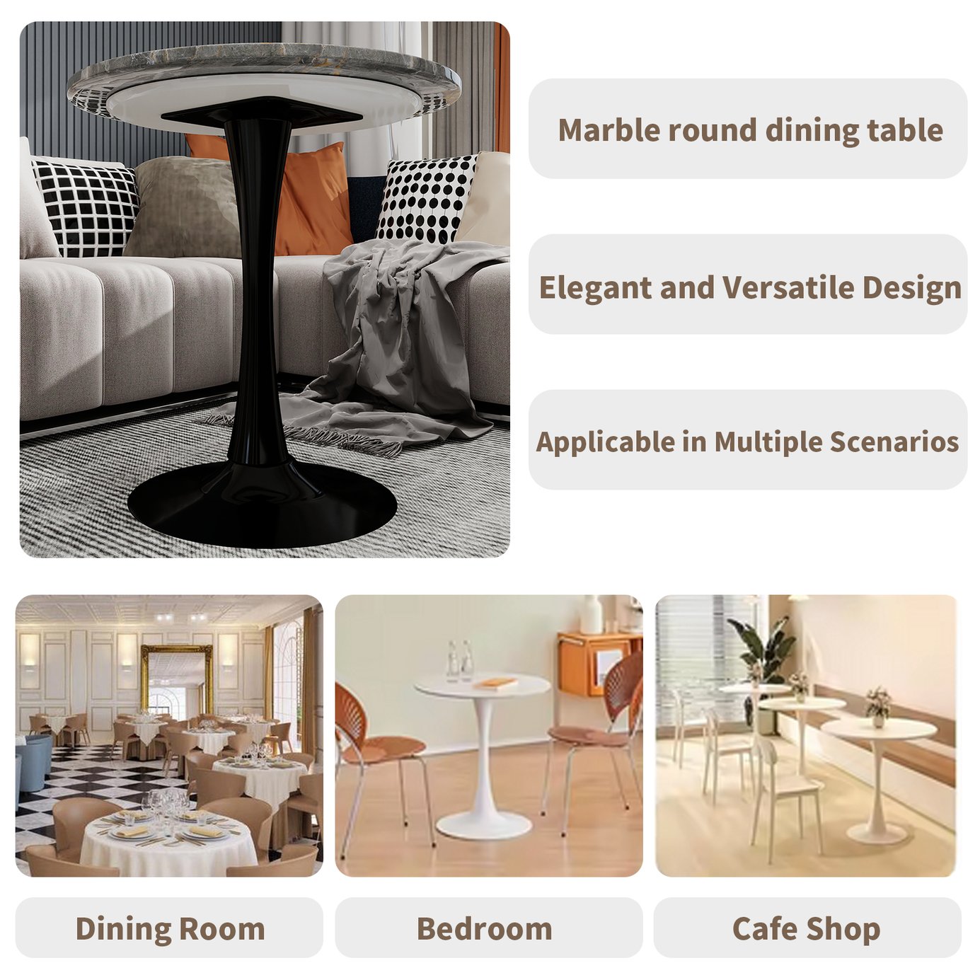 - Materials: Faux marble tabletop for a refined, low-maintenance surface; iron pedestal base with a matte black finish for stability and contrast.