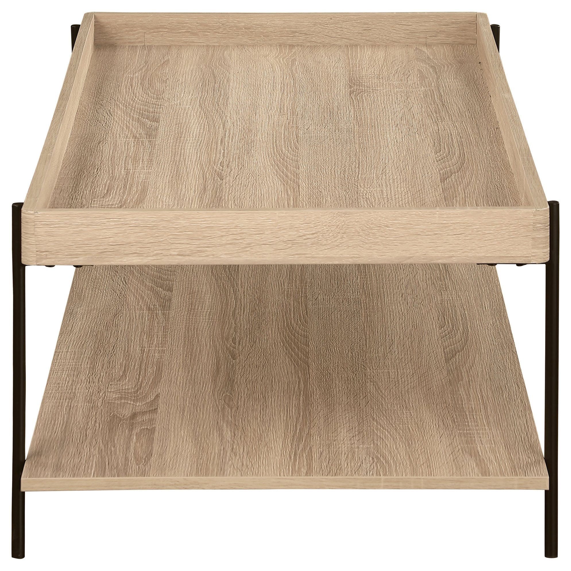 Bring warm, casual charm to your living room with this light brown rectangular coffee table—designed to blend farmhouse warmth with clean, modern lines. The raised edge creates a tray-like surface for magazines, décor, or serving, while the wood grain finish and sturdy construction ensure a timeless centerpiece that coordinates easily with sofas, loveseats, and a variety of décor styles.