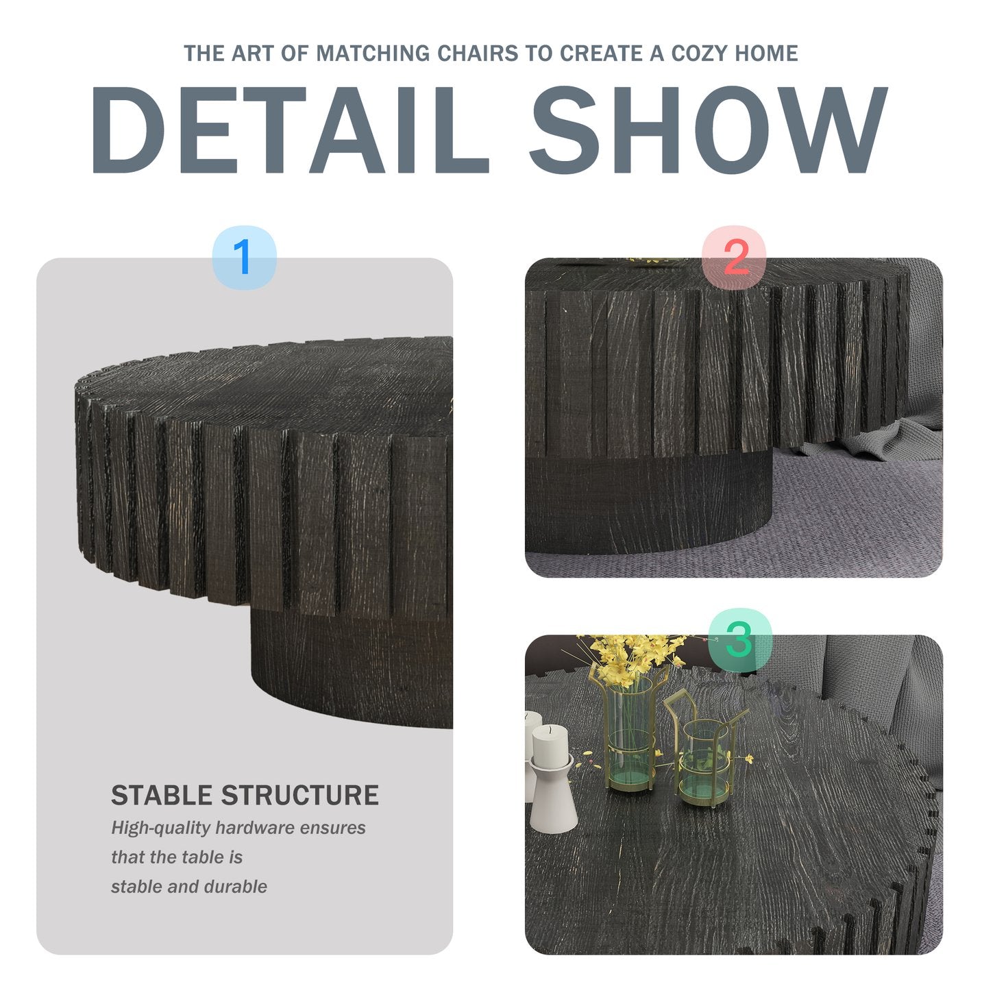 Bring modern minimalism into your living spaces with this elegant circular black coffee table. Its clean lines, natural wood texture, and compact profile create a versatile focal point that works equally well in living rooms, studies, or dining nooks. Designed for easy assembly and everyday use, this table blends refined craftsmanship with sustainable materials for long-lasting style and function.