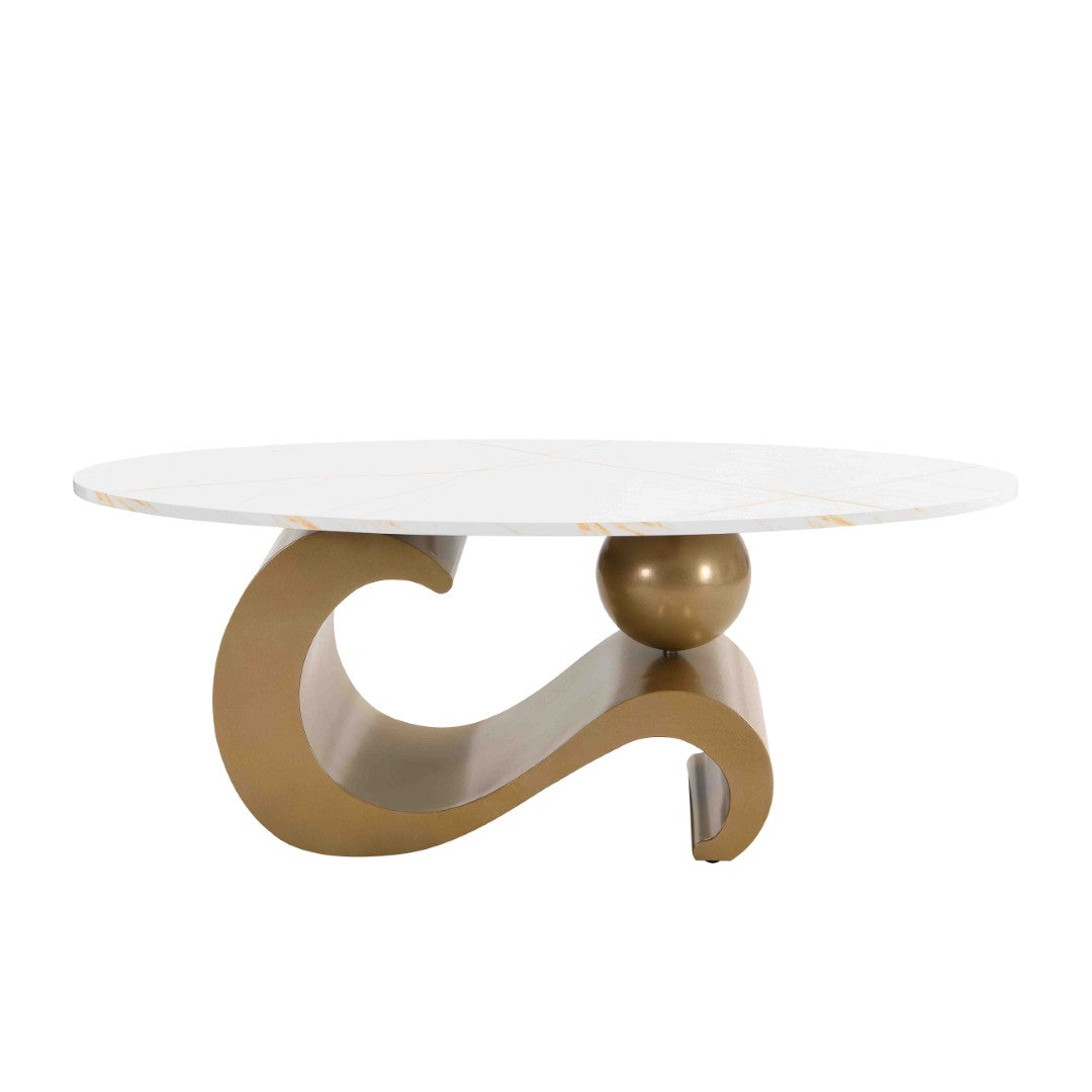 - 1. Elegant and Unique Design: Contemporary style adopts an authentic touch with the faux marble and golden metal frame Coffee Table and end table set. With special curve lines ensures an extremely elegant look and will allow it to be installed in any style of interior.