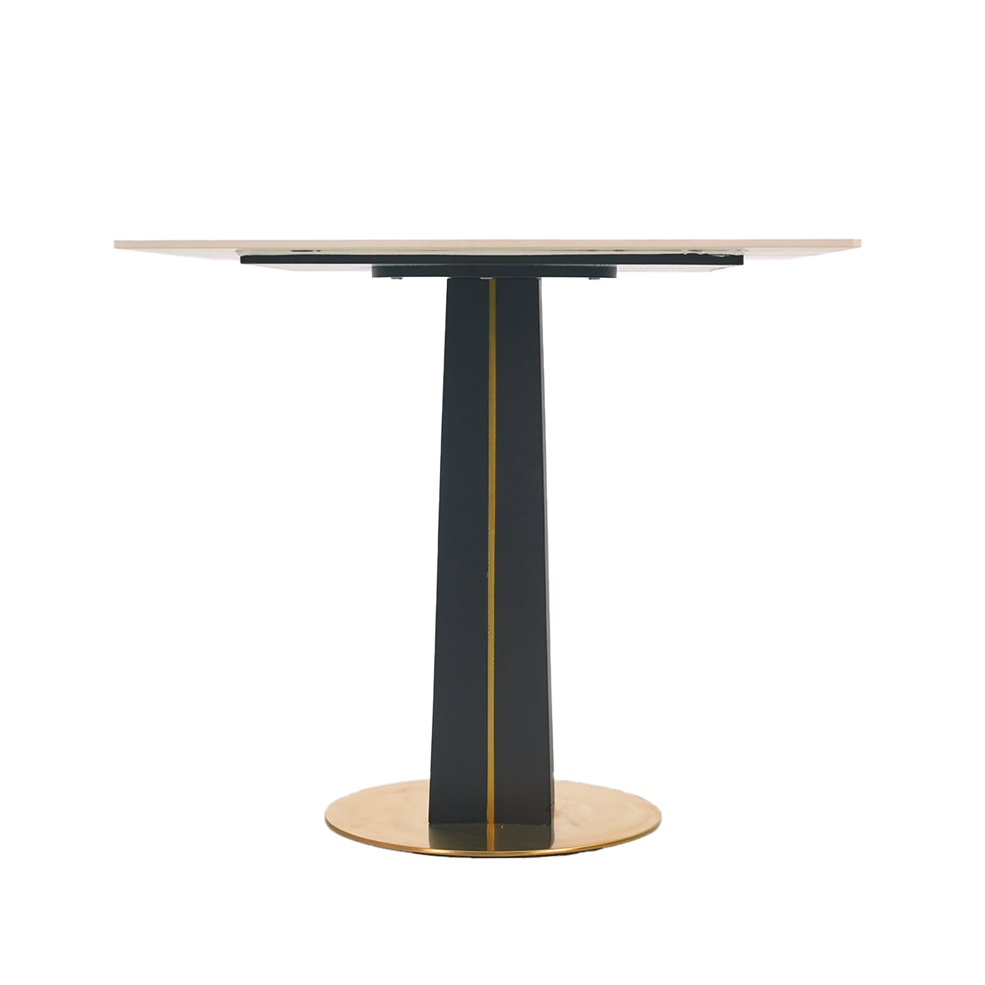 - Premium Material Combination:The 85cm - diameter tabletop adopts high - quality sintered stone, which is scratch - resistant, easy to clean and durable. The legs are made of solid black wood, and matched with a golden metal base, presenting a perfect blend of texture and stability.