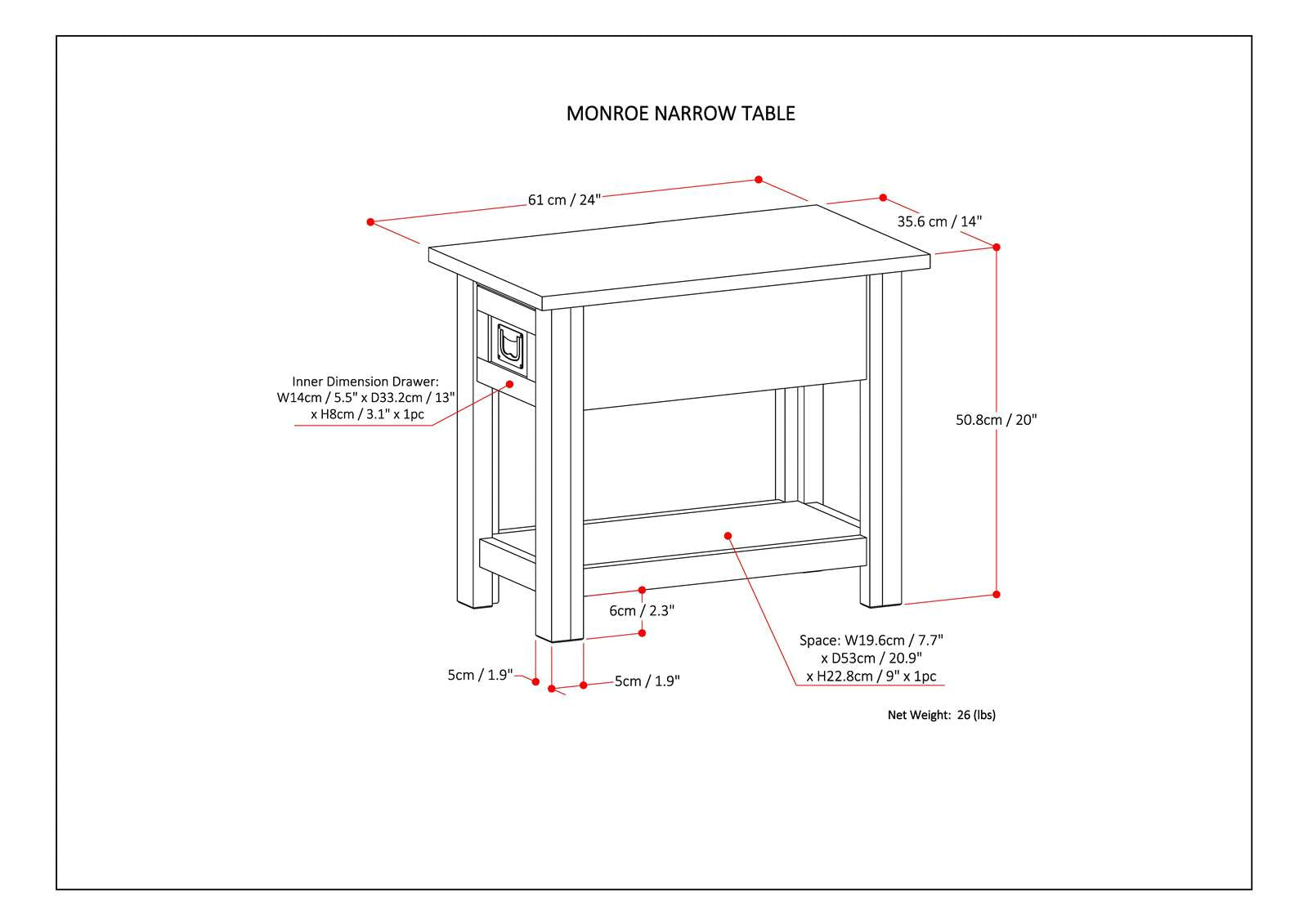 - Assembled Height(inch): 20