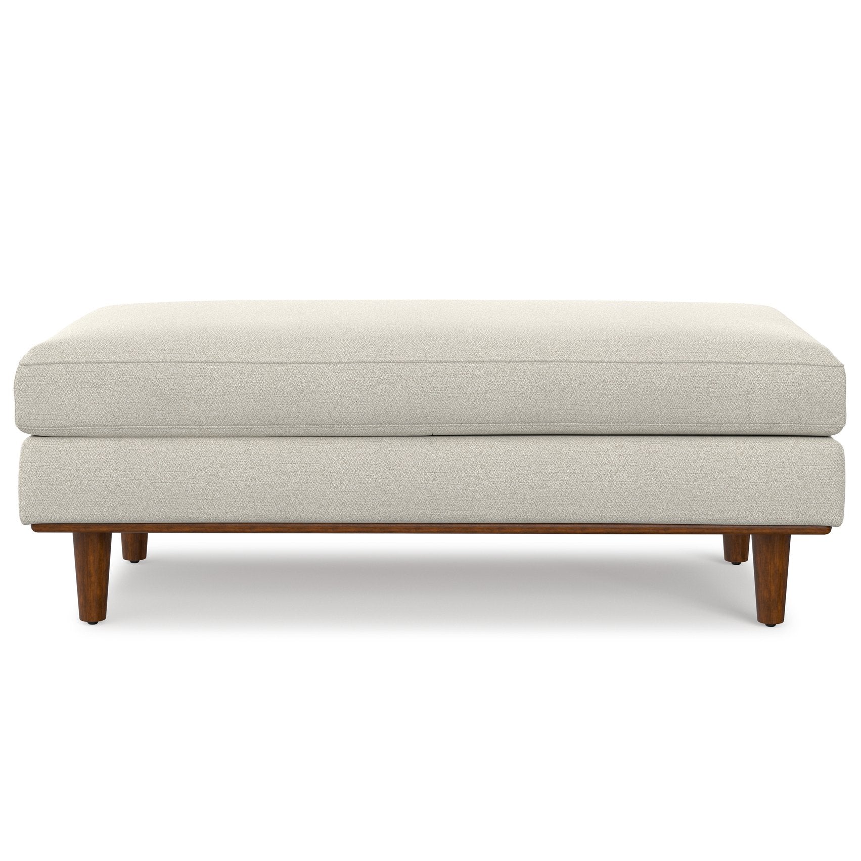 - Dimensions: Large, handcrafted 48.8"W x 25.8"D x 18.5"H ottoman with mid-century modern styling can be used as a footrest and impromptu coffee table, or place it against one of the matching Morrison sofas to convert the couch into a flexible sectional; accommodates up to 300 lbs.