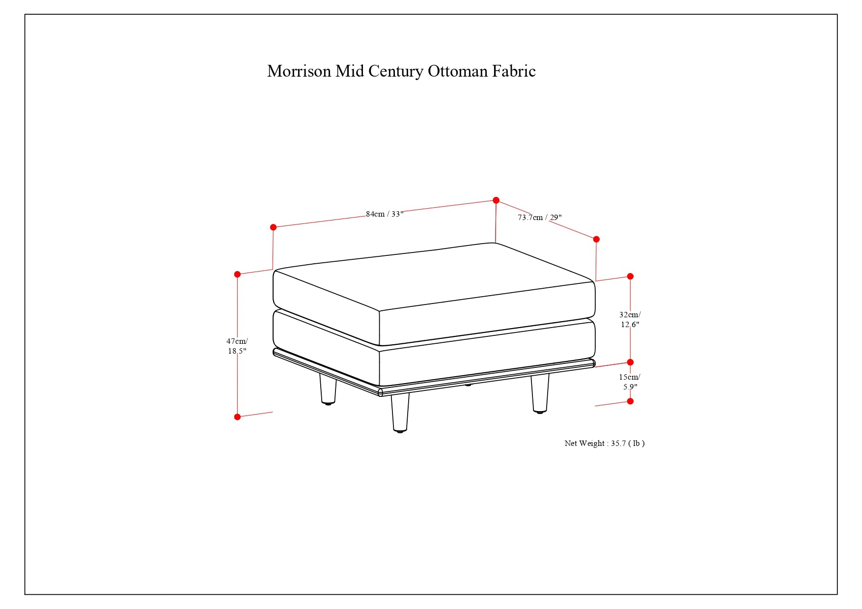 - Handcrafted, multifunctional ottoman with mid-century modern styling can be used as a footrest and impromptu coffee table, or place it against one of the matching Morrison couches to convert the sofa into a flexible sectional; accommodates up to 300 lbs.