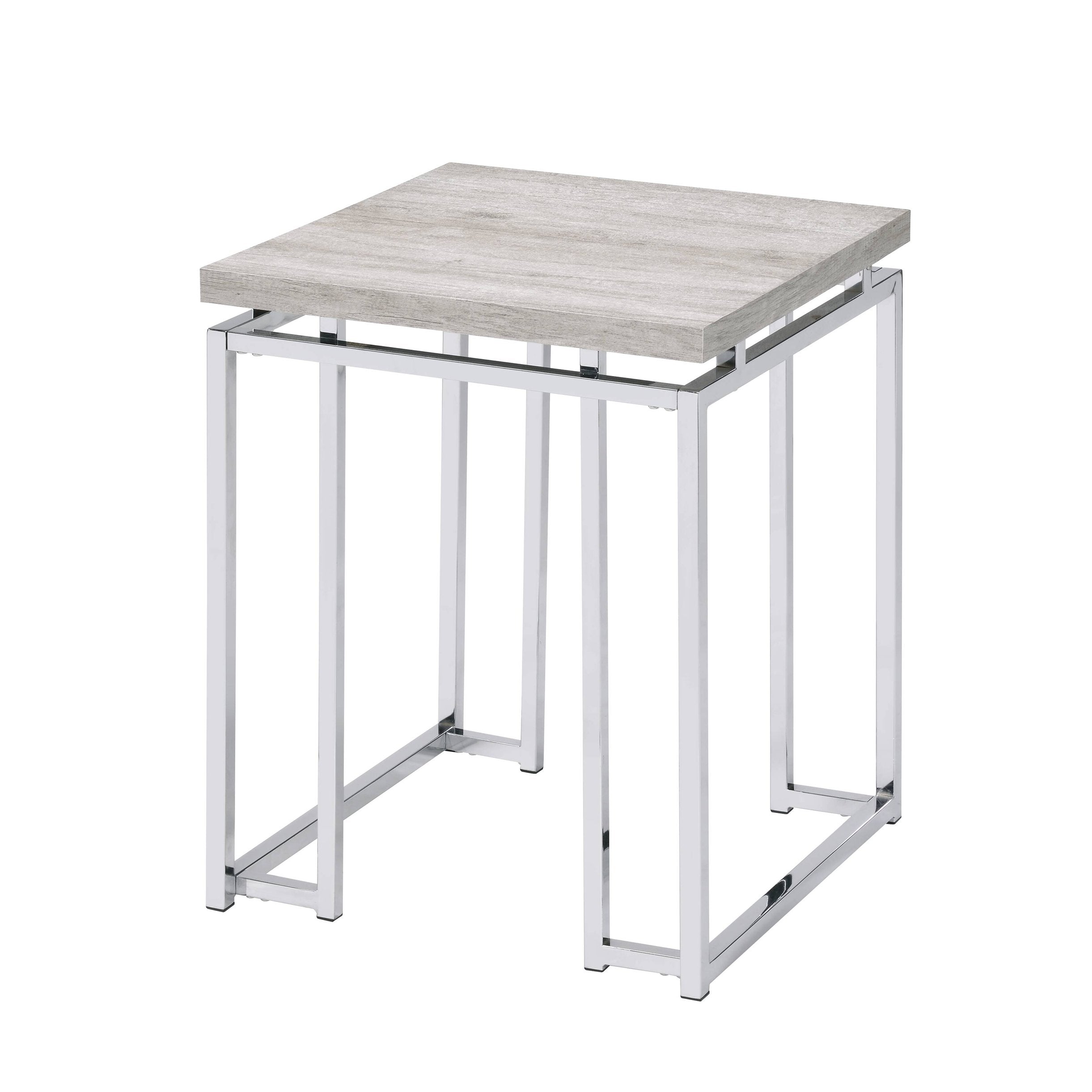 Give your living space a clean, contemporary update with this Natural Oak and Chrome end table. Its warm oak tabletop and polished chrome sled base combine mid-century warmth with modern minimalism, creating a versatile piece that works equally well as a side table, lamp table, or display surface. Built for everyday use, the table balances style and stability with thoughtful details like a metal apron trim and durable construction.