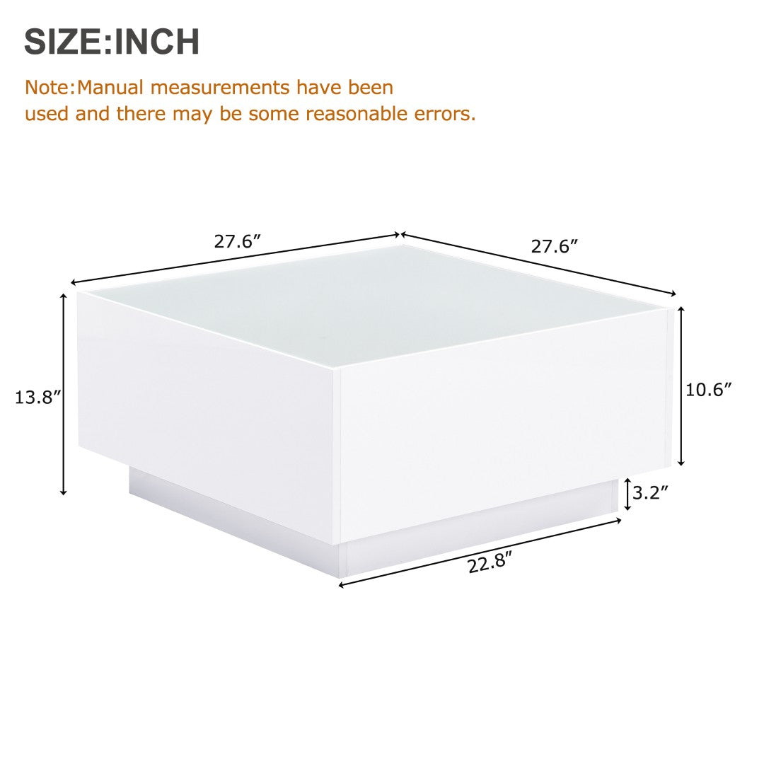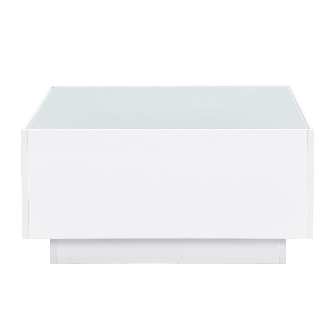 Bring contemporary style and ambient lighting to your living room with this sleek square coffee table. Its high-gloss white finish and frosted tempered glass top deliver a modern, upscale look while the integrated 16-color LED strip adds customizable mood lighting. Designed for everyday use, the table balances attractive design, durable materials, and straightforward assembly.