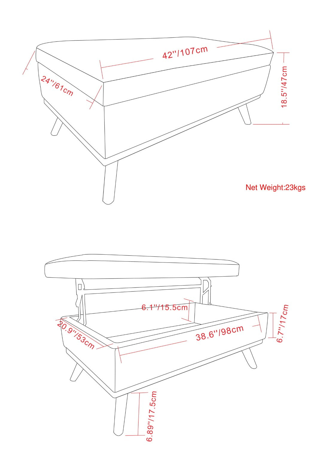 - Large Internal Storage: Generous storage compartment beneath the lift top provides concealed space for throws, pillows, toys, or board games to help keep your room tidy.