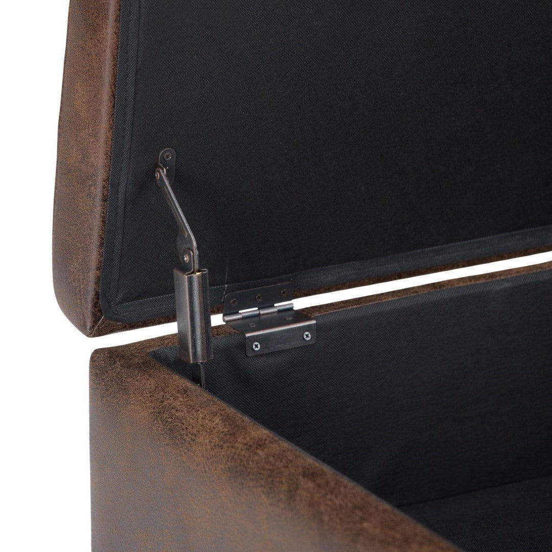 Upgrade your living space with the Owen storage ottoman — a versatile, mid-century inspired piece that blends tasteful distressed chestnut faux leather with practical storage and seating. Its lift-top design conceals roomy storage while a child-safe hinge prevents accidental lid slams, making it a stylish and family-friendly addition to living rooms, family rooms, or dens.