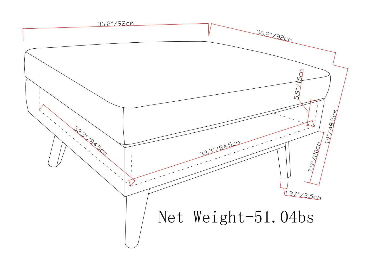 - Dimensions: 36"D x 36"W x 19.1"H