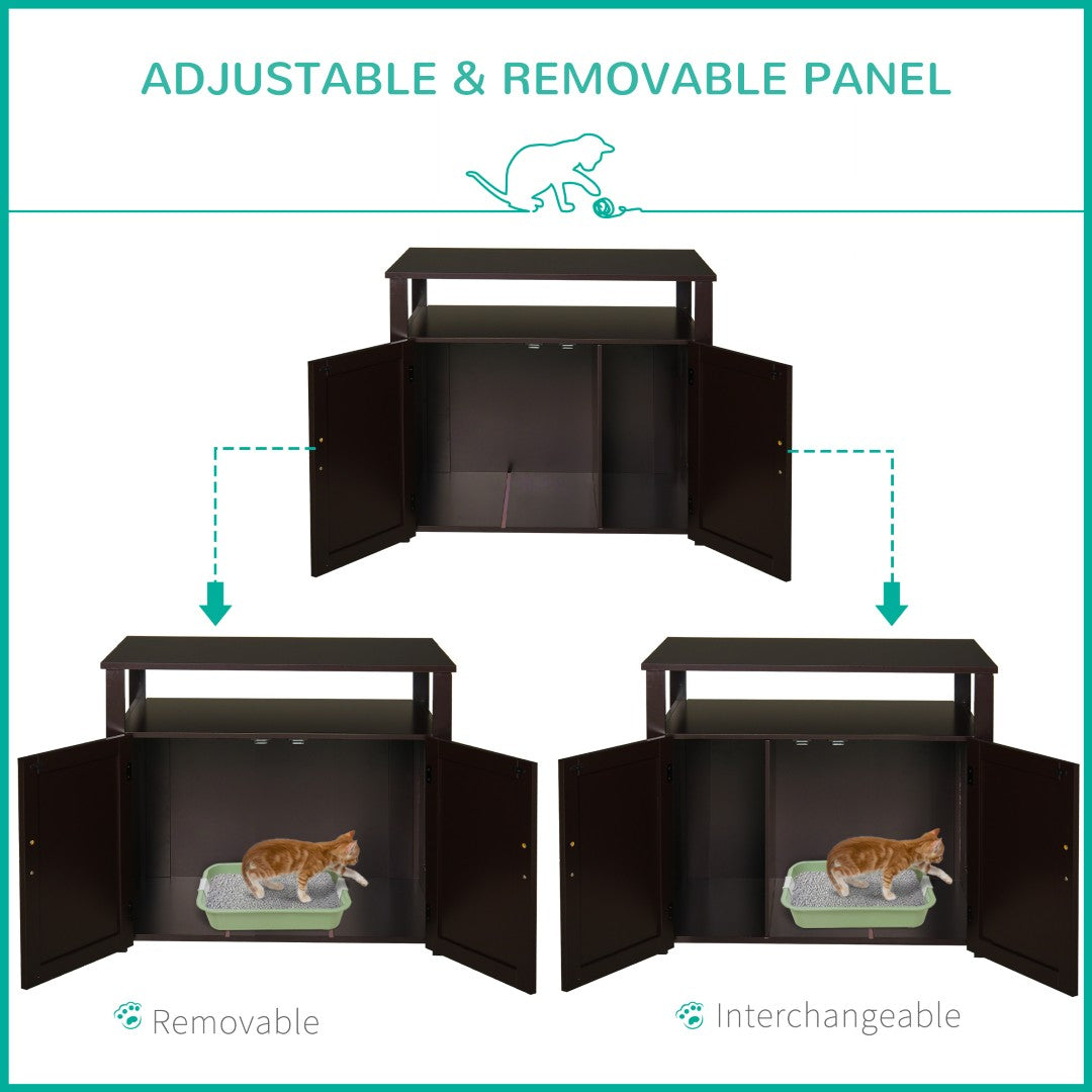 - Multi-Functional: A stylish and simple appearance makes matching this cat litter box furniture with the rest of the furniture in your home easy. You can use this litter box enclosure as a pet house, side table, or storage cabinet.