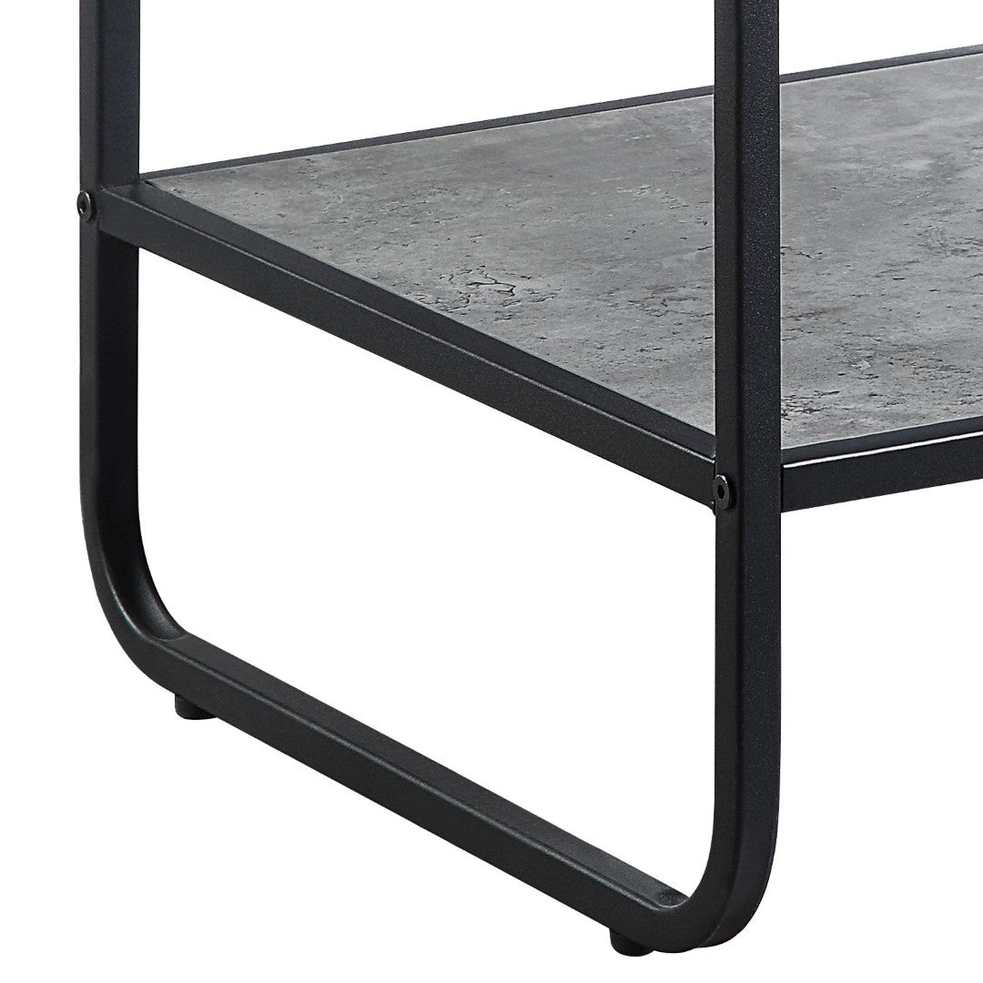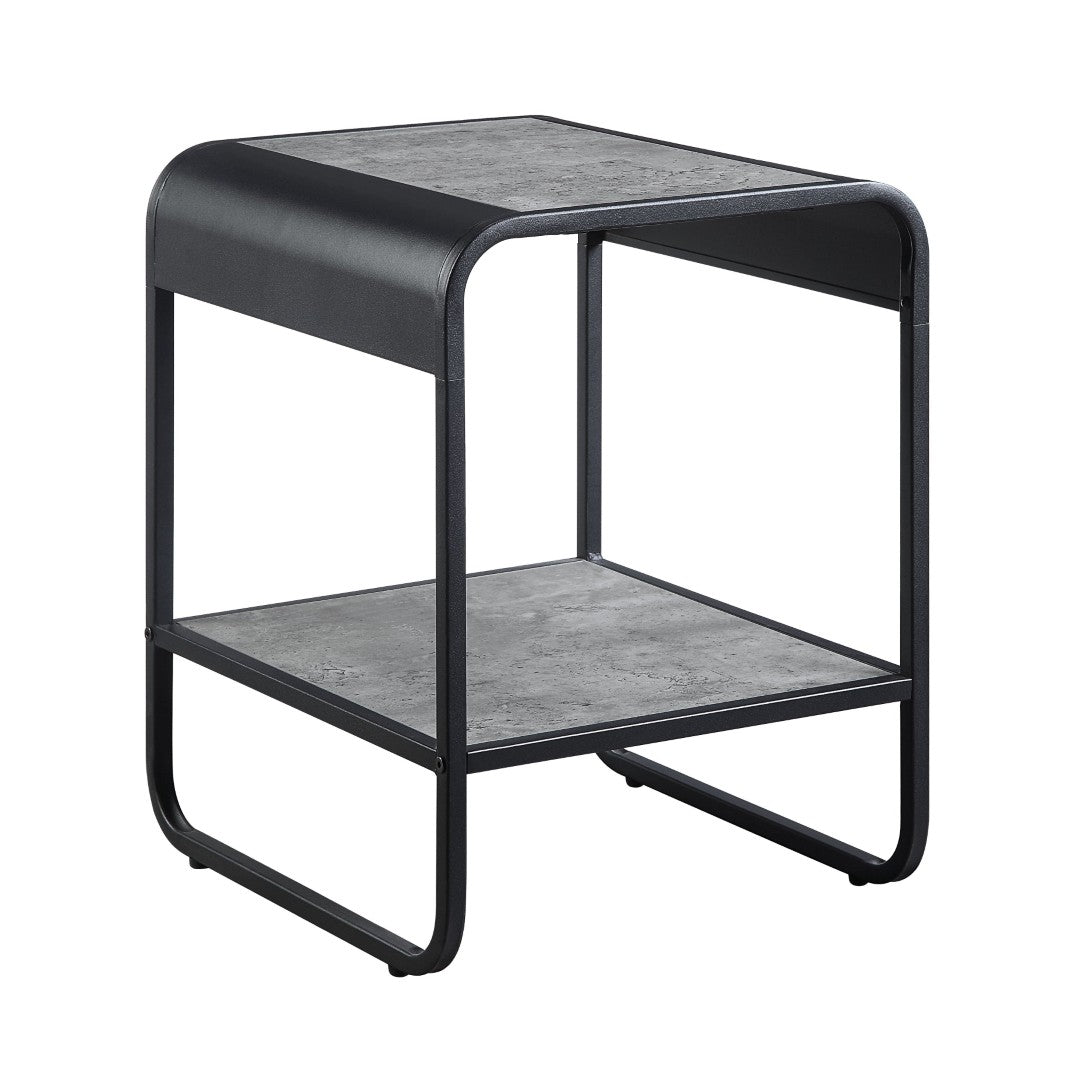 - This end table features a sleek and modern design with a Concrete Gray and Black finish that complements contemporary living spaces.