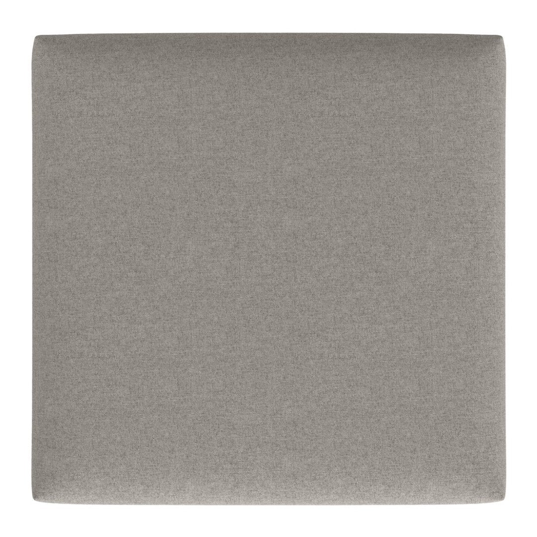 - Upholstered in a durable Cloud Grey Linen-Style fabric.