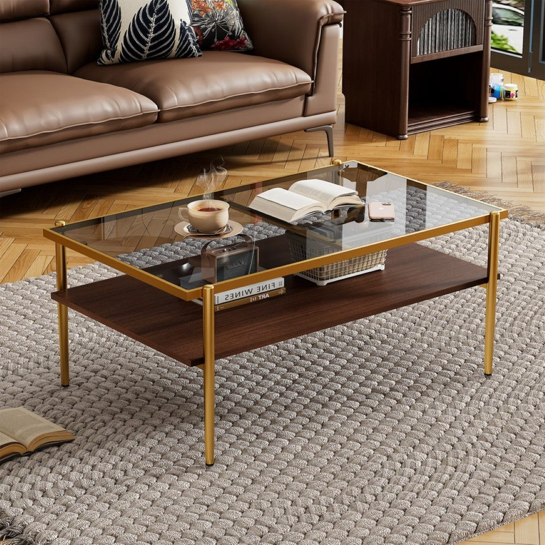 Enhance your living room with a modern, elegant centerpiece that blends tempered glass sophistication with warm metallic accents. This rectangular coffee table delivers durable construction, refined details, and a versatile look that complements contemporary and transitional interiors while providing practical functionality for everyday use.