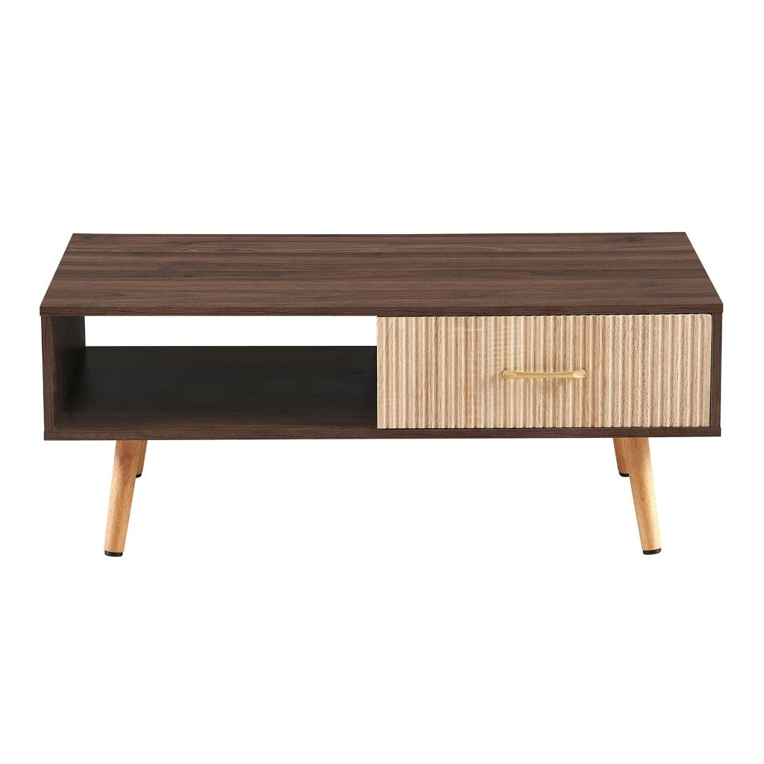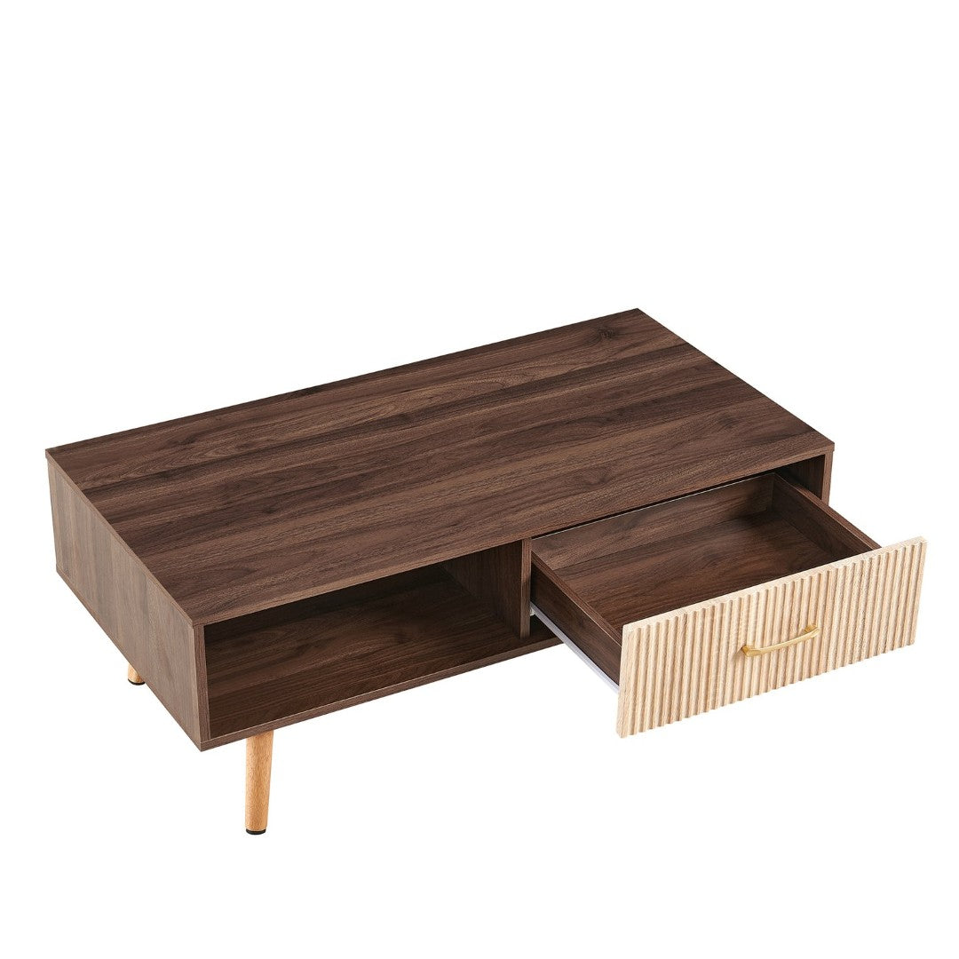 Enhance your living room with this modern walnut coffee table that blends clean lines, practical storage, and solid construction. Its understated silhouette and textured drawer front add visual interest while the spacious top and smooth-gliding drawer keep essentials organized and within reach — a stylish, functional centerpiece for contemporary homes.