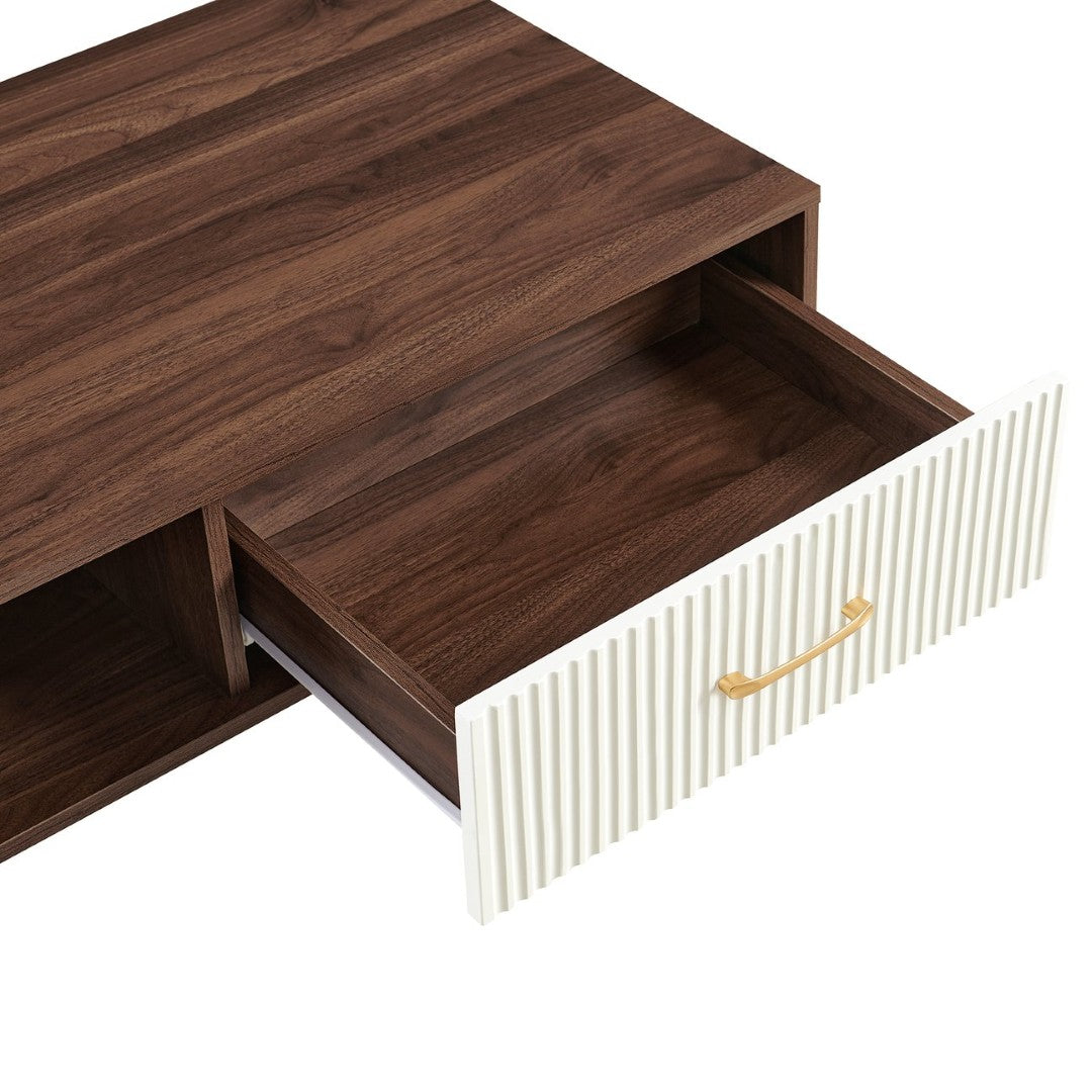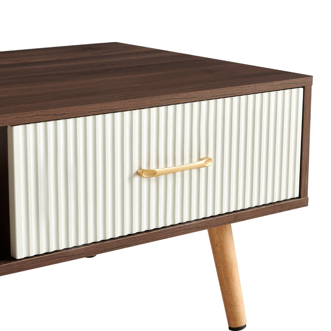 Add warmth and practical style to your living space with this modern rectangular coffee table. Combining a rich walnut finish, solid wood legs, and a smooth sliding drawer, it offers both attractive mid-century styling and everyday functionality—perfect for organizing remotes, magazines, and other living-room essentials while providing a sturdy surface for drinks and décor.