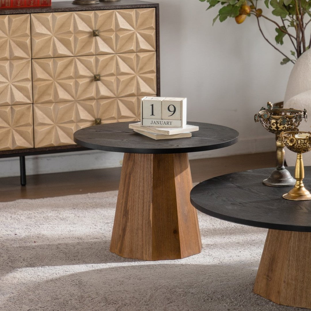 Bring natural texture and modern simplicity to your living space with this round pedestal coffee table. Its smooth, wide tabletop features a realistic cedar bark veneer that elevates everyday living—providing a durable, easy-to-clean surface ideal for drinks, snacks, and décor. The compact footprint and sturdy pedestal base make it both stylish and practical for small to medium-sized rooms.