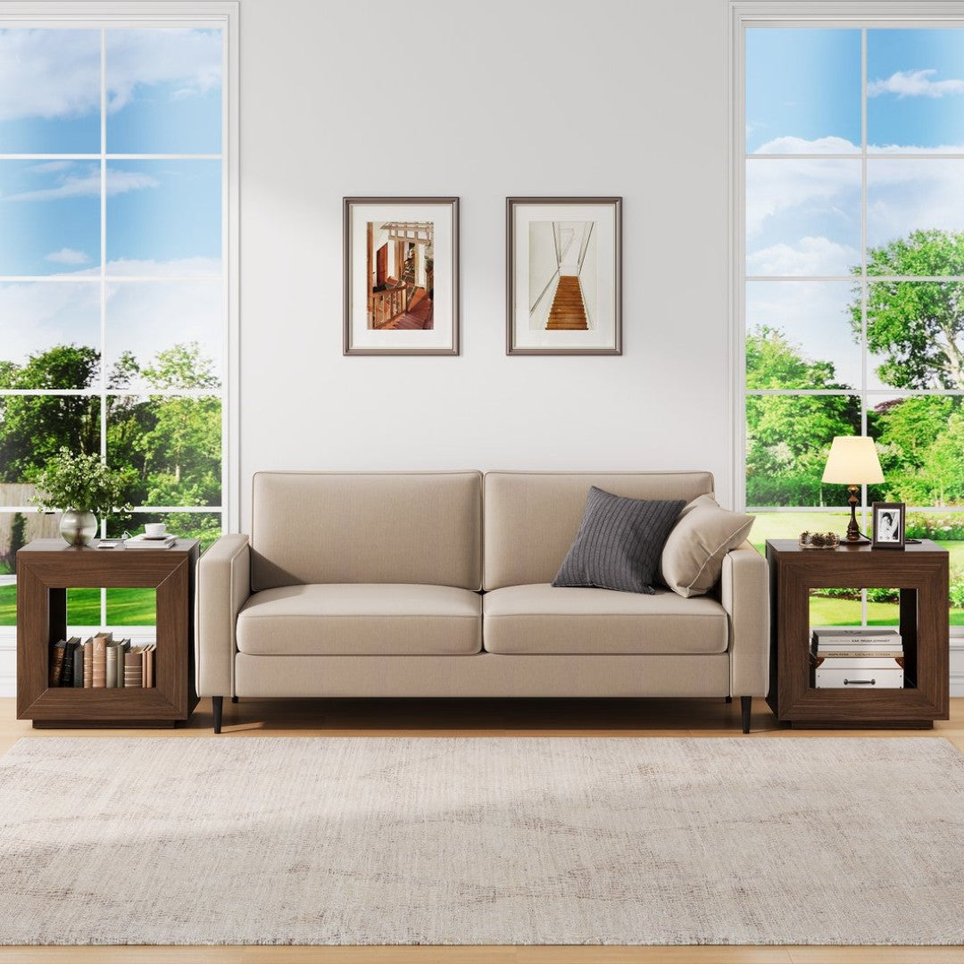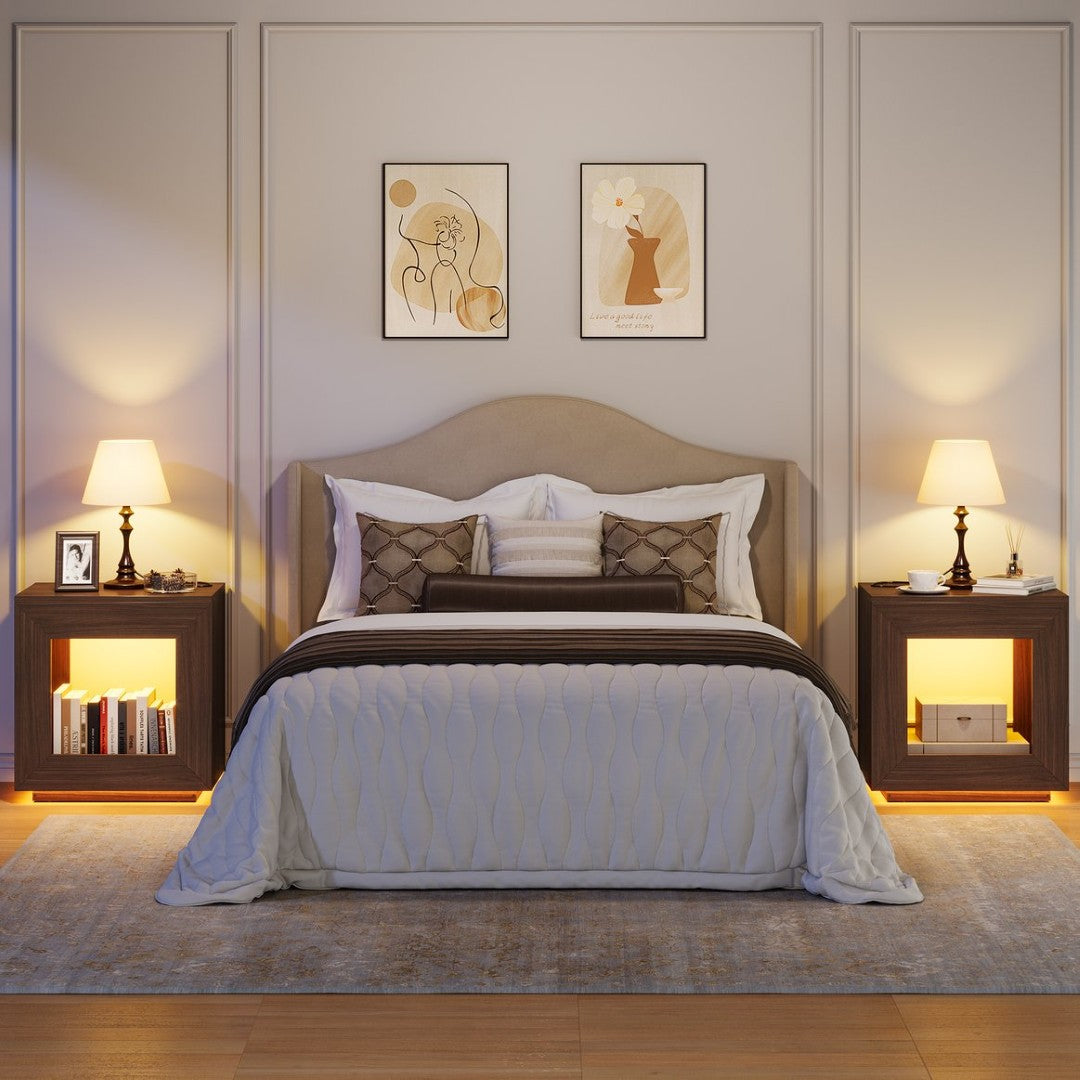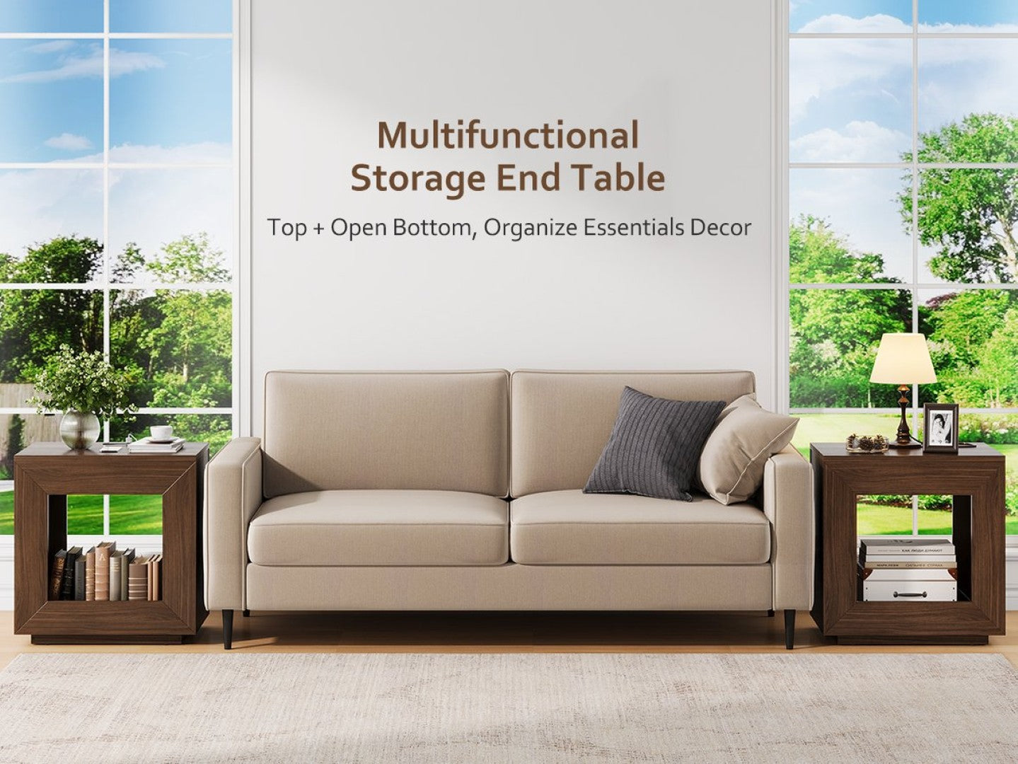 Bring rustic warmth and modern convenience to your living space with this 2-tiered square end table. Built with an industrial-inspired frame and a weathered brown finish, it combines sturdy storage, smart charging, and customizable LED ambient lighting to enhance both function and atmosphere beside your sofa, bed, or entryway.