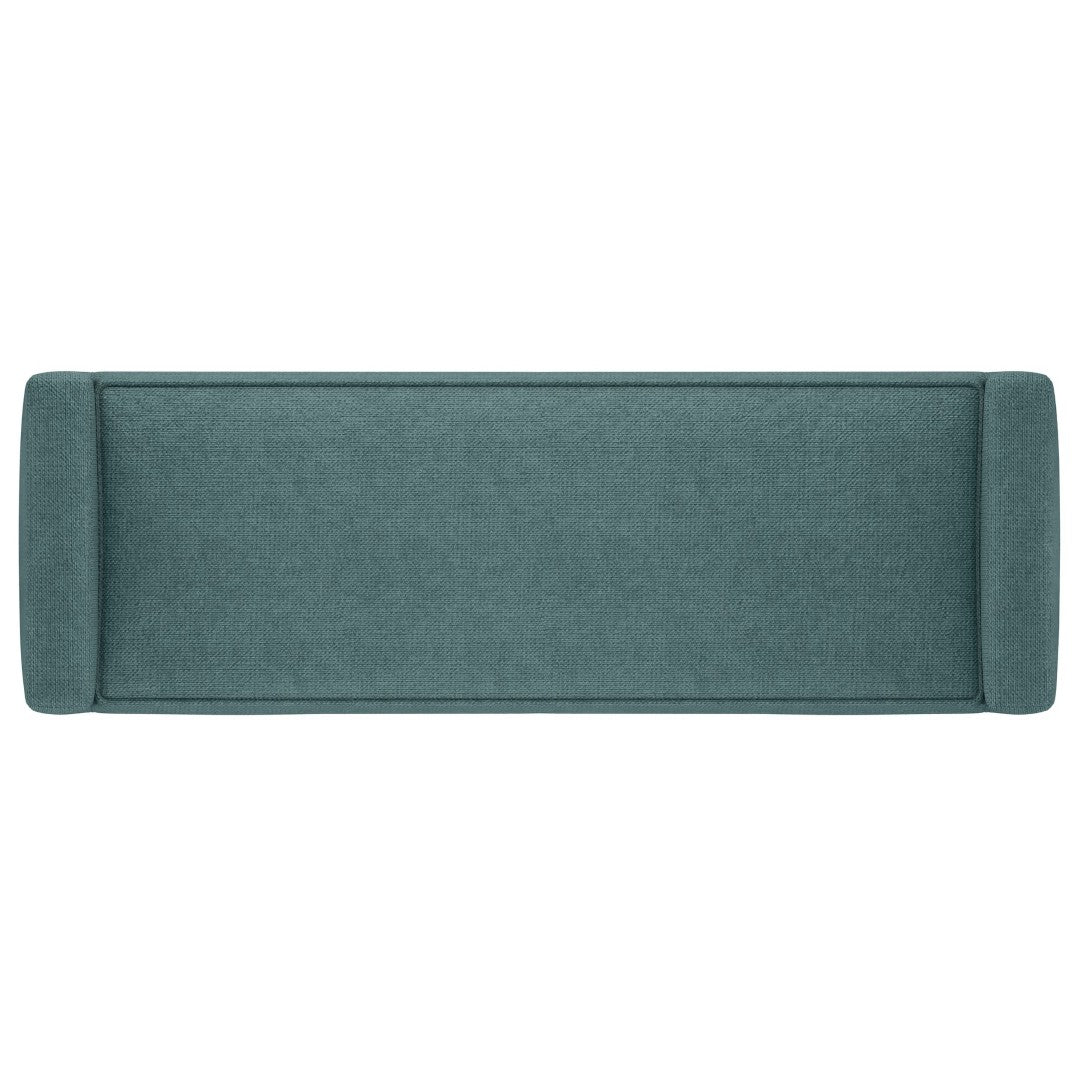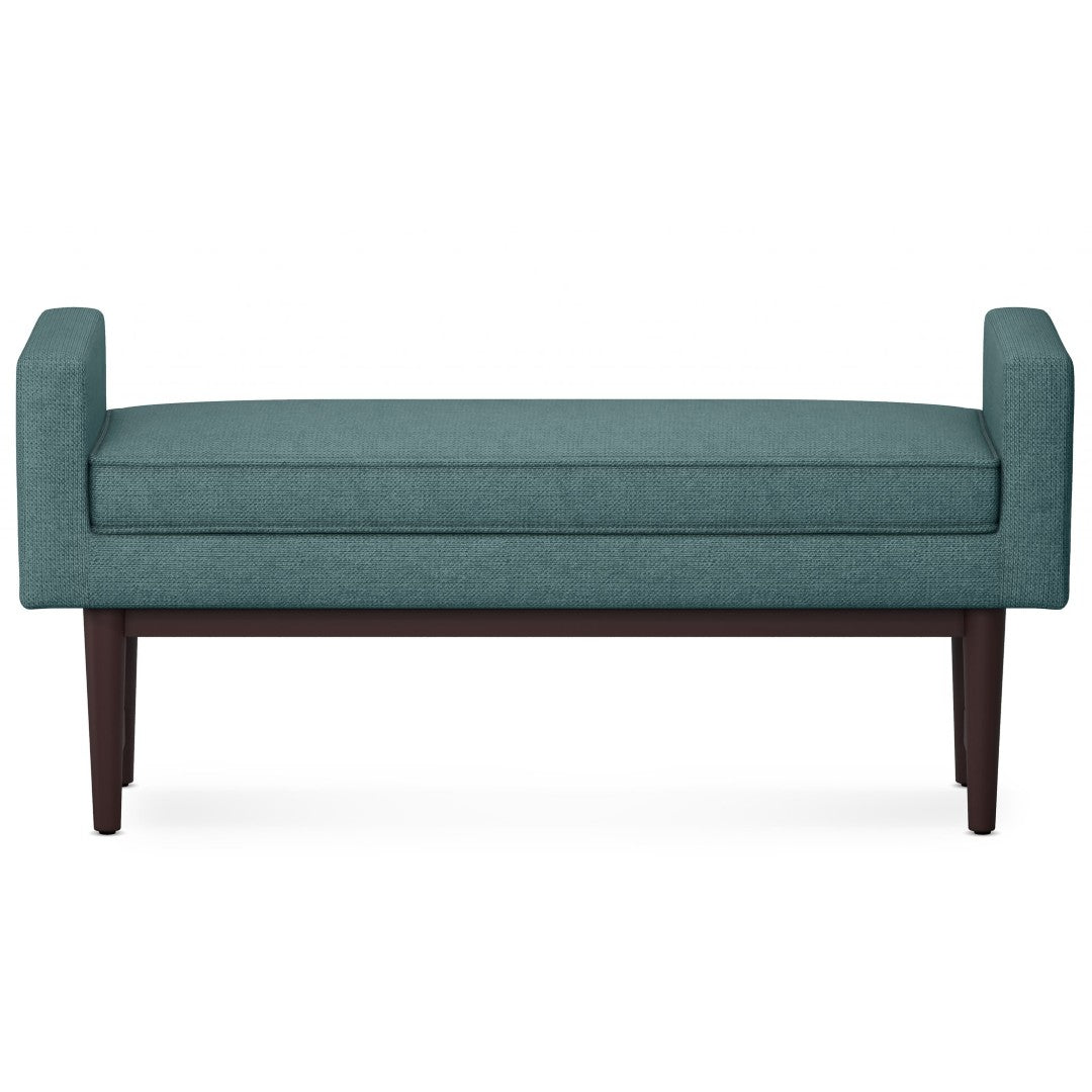 A versatile and contemporary ottoman bench that blends comfort, durability, and style — perfect as an entryway bench, extra seating in the living room, or a statement piece in the bedroom. Upholstered in a durable smoky teal woven fabric, this hand-constructed piece features raised sides and a padded seat for added comfort, while a solid wood base and legs provide sturdy support and long-lasting performance.