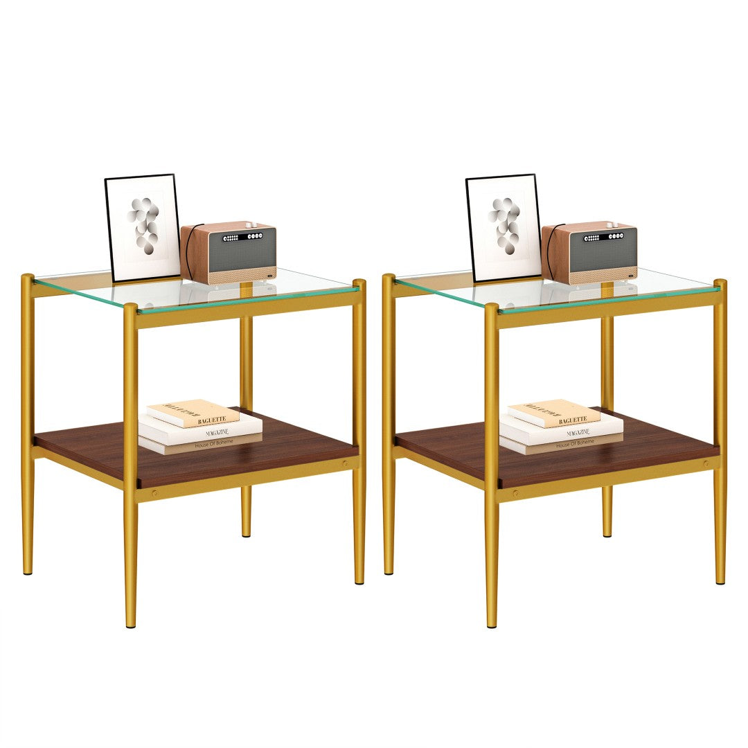 Bring modern simplicity and practical function to your living space with this set of two rectangular end tables. Each table pairs a clear tempered glass top with a durable MDF shelf and sturdy iron legs, creating a light, contemporary look while providing reliable everyday use and convenient storage.