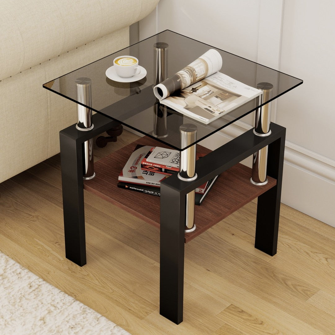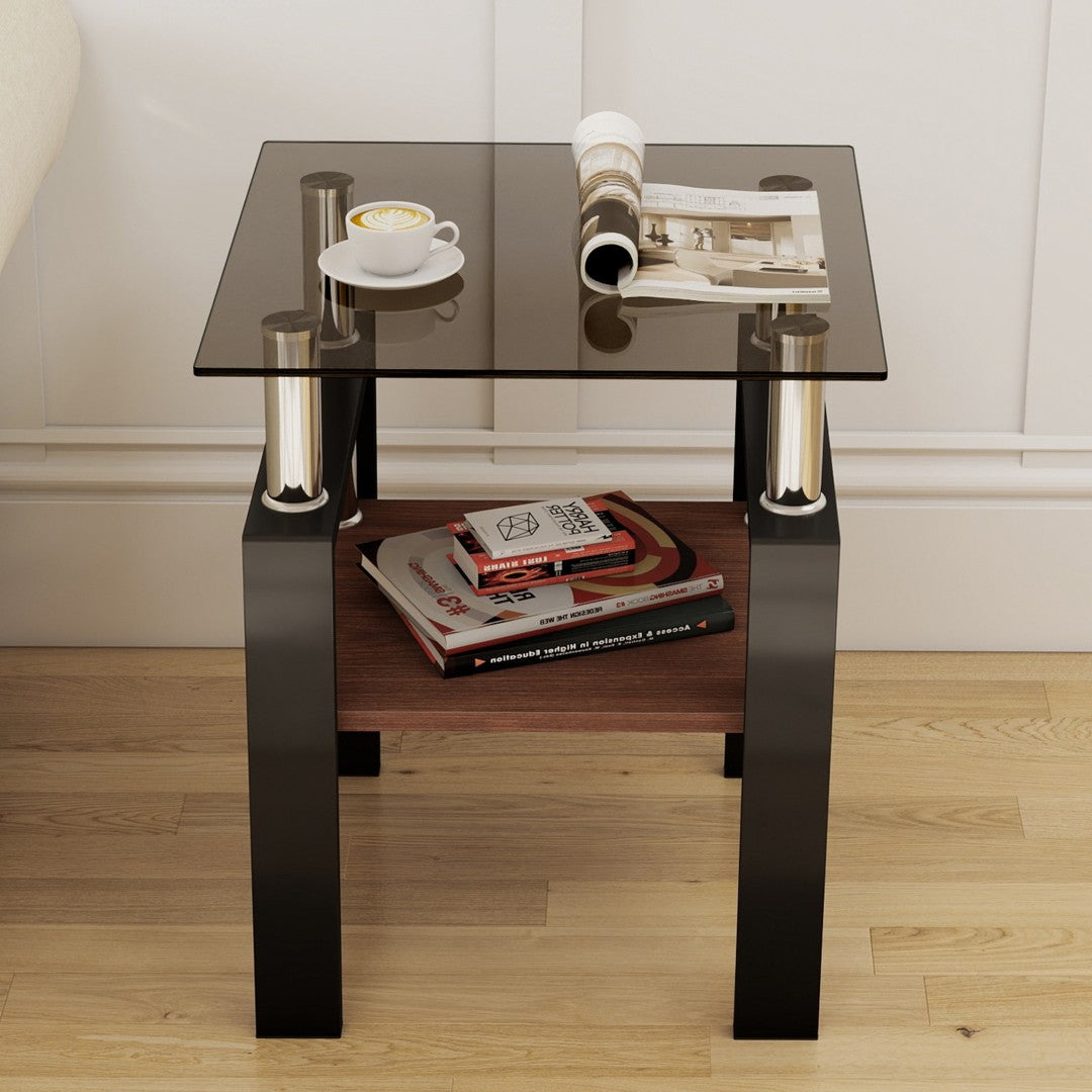 Sleek and versatile, this set of two modern square side tables blends tempered glass elegance with sturdy MDF functionality to elevate your living space. Ideal as tea tables, end tables, or compact coffee tables, their minimalist profile and neutral gray/black finish complement contemporary and transitional interiors while offering practical strength for everyday use.