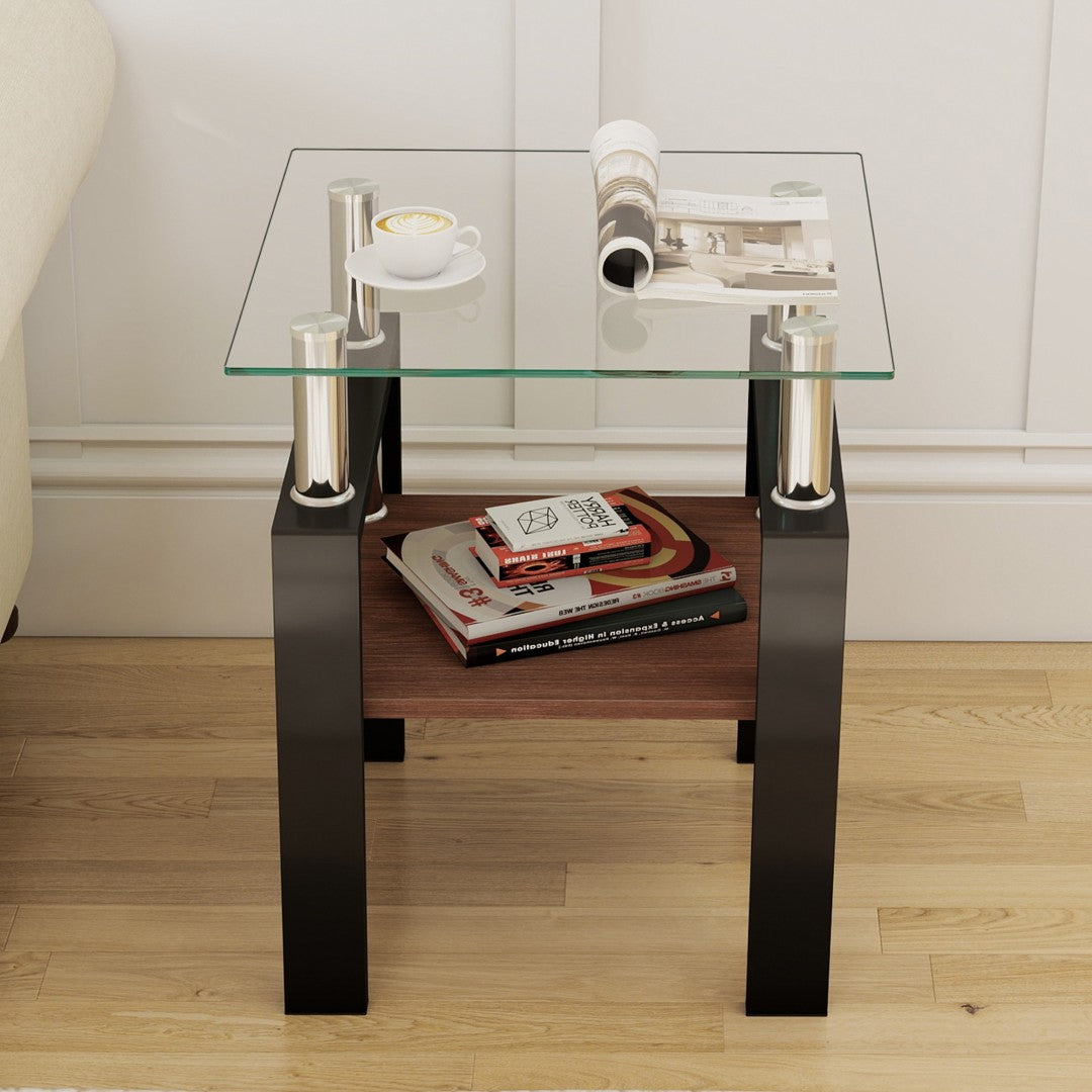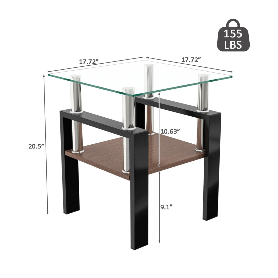 Elevate your living space with this modern set of 2 tempered glass tea tables that blend sleek contemporary styling with practical durability. Each square table pairs a clear tempered glass top with a sturdy MDF lower shelf and metal legs, offering a refined surface for drinks, decor, or everyday use while providing reliable load-bearing performance and easy maintenance.