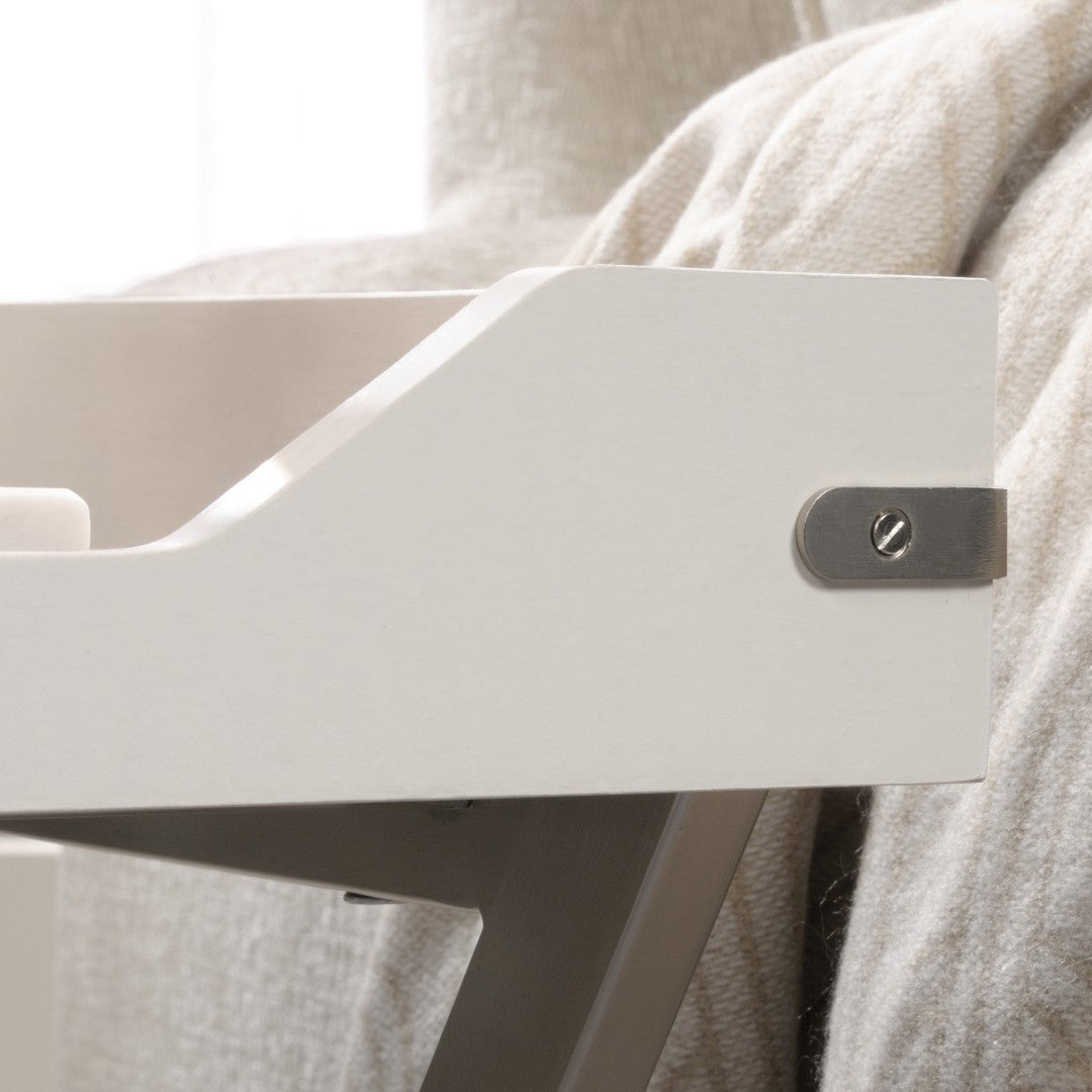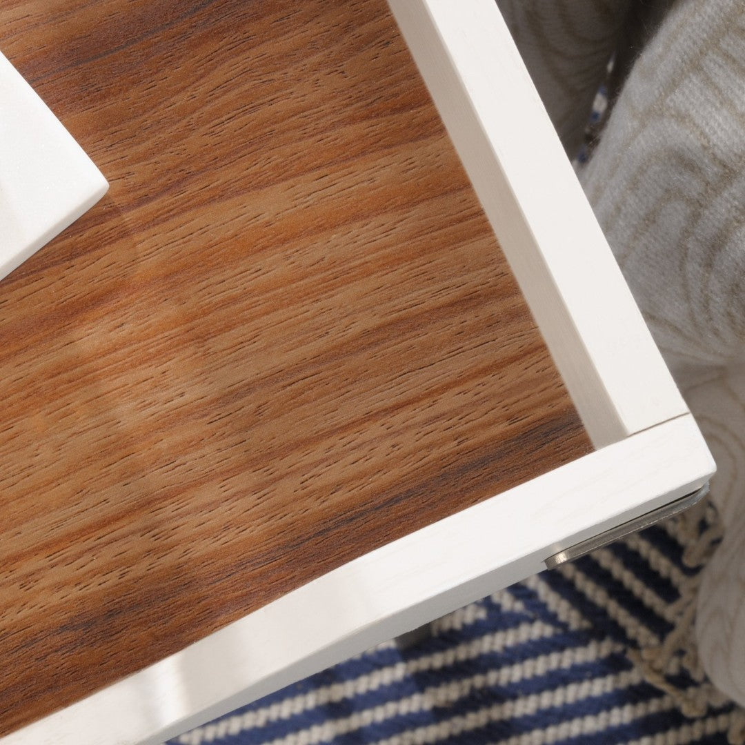 A sleek, versatile side table that blends modern durability with compact convenience—perfect for living rooms, offices, or cozy reading nooks. Finished in a neutral white and supported by a sturdy metal frame, this piece offers a roomy tray surface plus a lower shelf to neatly display decor, store books, or keep essentials within reach without taking up valuable floor space.