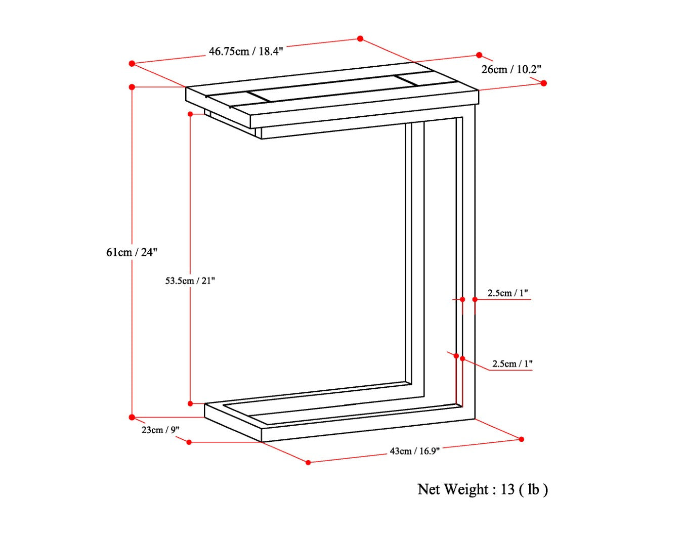 - Design: C-shape allows the table to slide under most couches or chairs for convenient laptop or tablet use; also functions as an end or side table.