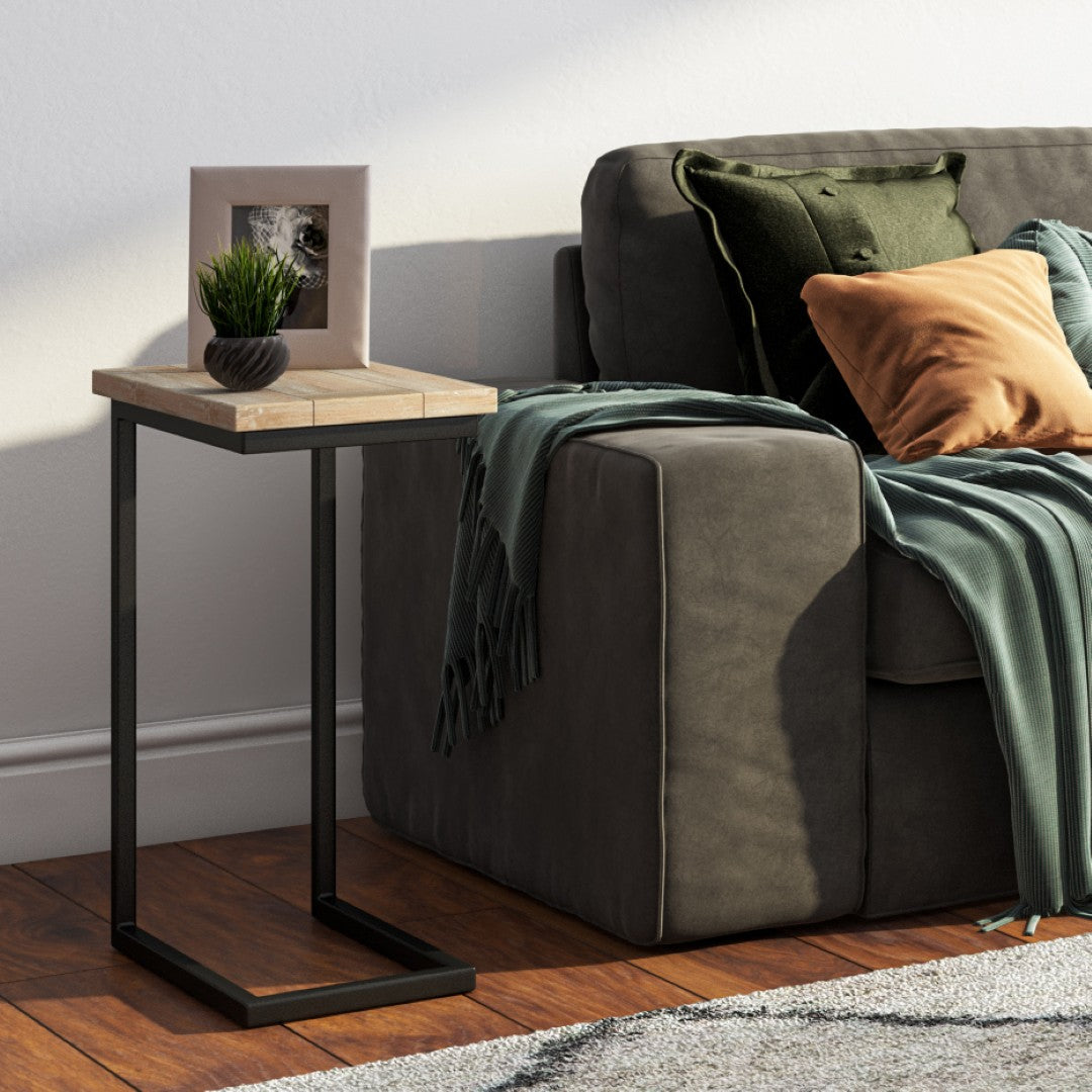 Bring functional style to your living space with this handcrafted C-shaped side table. Its distressed white-wash finish and industrial metal base blend rustic warmth with modern utility—perfect as a laptop tray, end table, or accent piece beside a sofa or bed. Each piece is finished to highlight the natural grain of solid mango wood, ensuring a unique look and durable surface for everyday use.