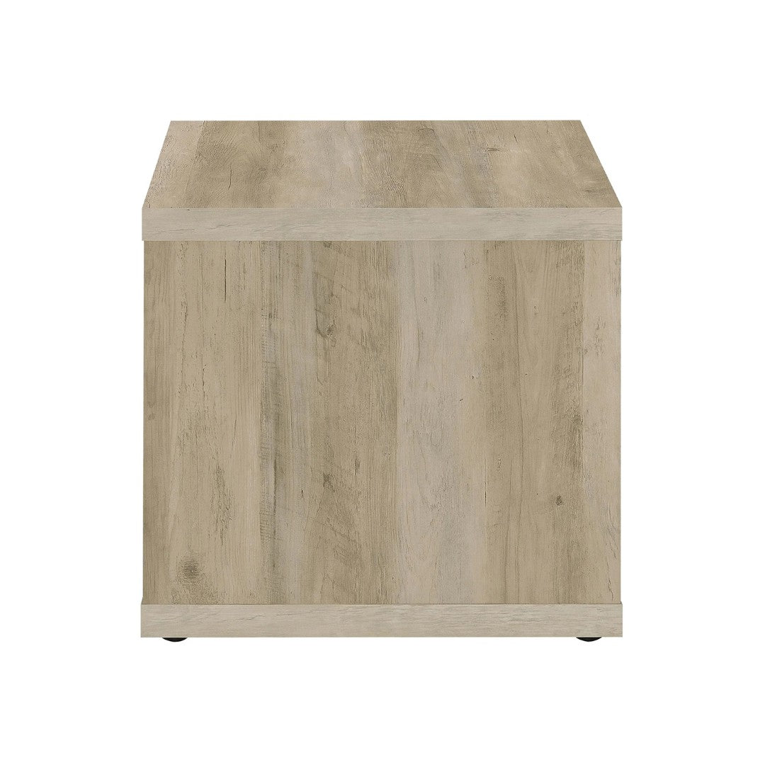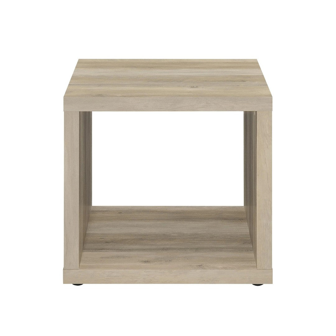 Bring rustic warmth and modern simplicity to your living room with this square end table. Its clean cubic silhouette and distressed pine wood-look finish create a cozy, farmhouse-inspired vibe while the engineered wood construction ensures durability and everyday practicality. The open design and lower shelf provide accessible storage and display options without overwhelming smaller spaces, making it a versatile accent piece for contemporary, rustic, or transitional interiors.