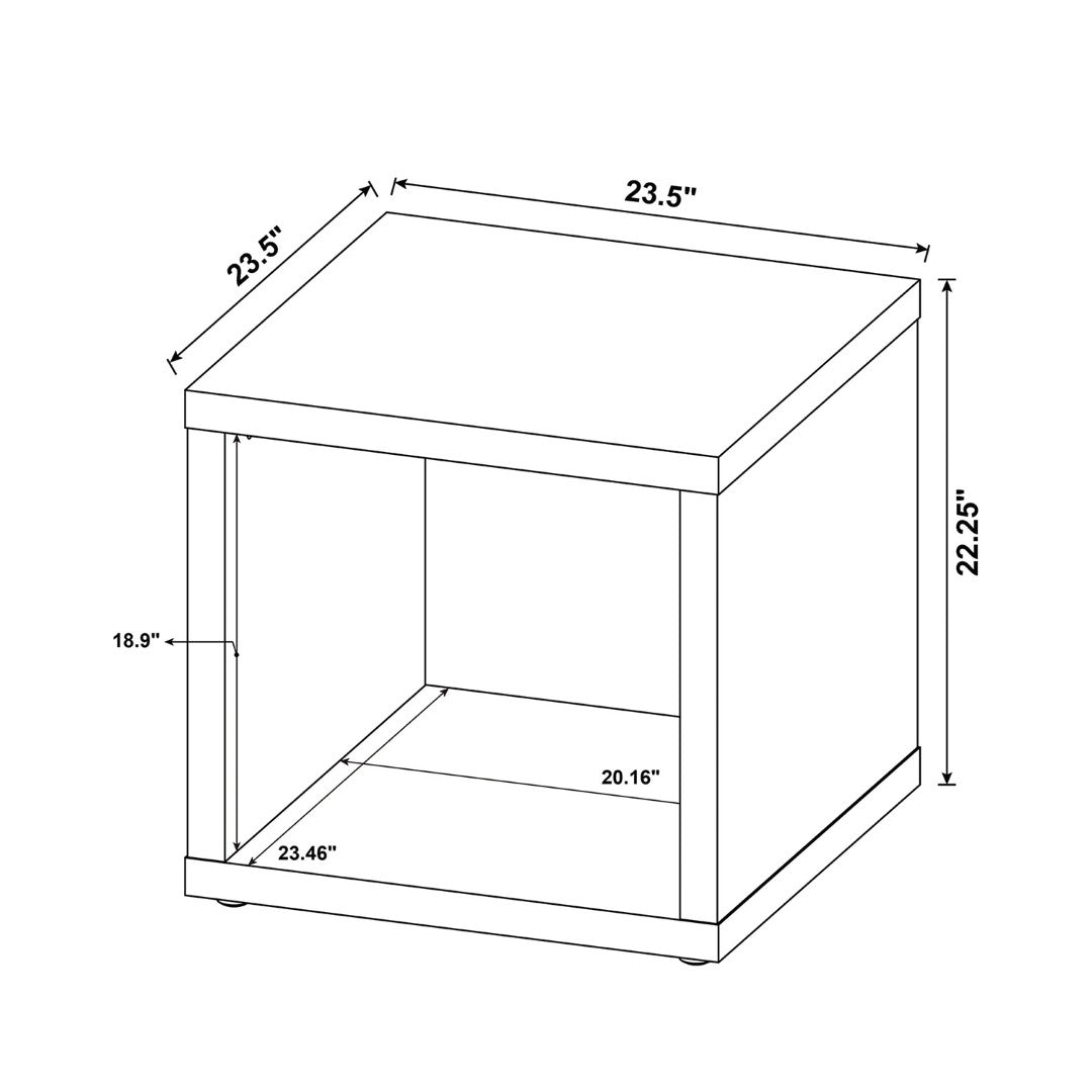Bring warm, rustic character and practical storage to your living space with this compact square end table. Its clean cubic silhouette and dark pine wood-look finish complement farmhouse, modern, or transitional decor while the engineered wood construction ensures durability for everyday use. The open design and lower shelf provide easy access and versatile display or storage options, making it a functional accent piece for small or large rooms alike.