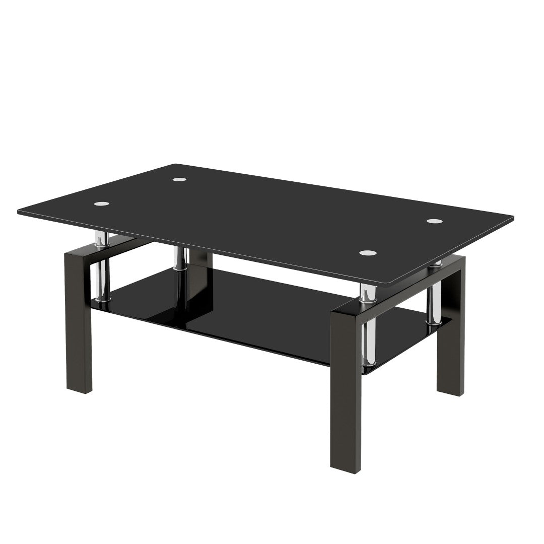 Give your living space a sleek, modern anchor with this two-tier tempered black glass coffee table. Its minimalist silhouette and glossy waterfall edges add contemporary elegance while providing a durable, easy-to-clean surface and convenient lower shelf for storage or display—ideal for compact spaces, sofa-side use, or reception areas.