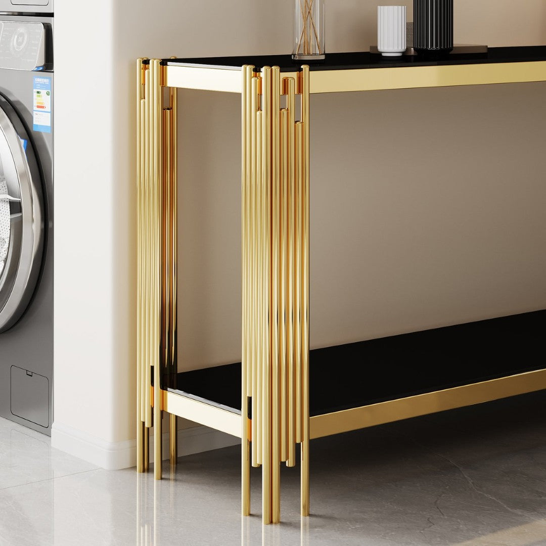 Elevate your entryway or living space with this elegant double-layer console table, combining tempered glass shelving and a mirror-finished stainless steel frame for a luxe, contemporary look. Designed for both style and function, it offers generous storage without overwhelming your room, and the reflective surfaces amplify light to make spaces feel brighter and larger.