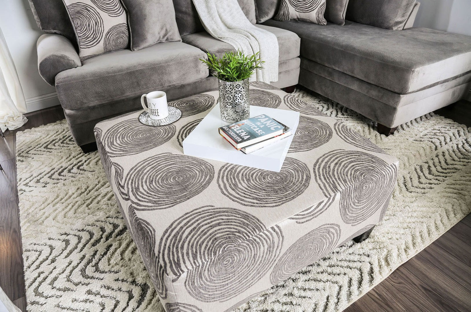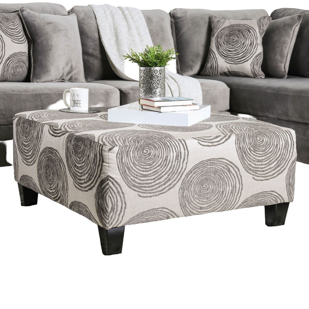 This oversized, transitional-style square ottoman blends modern patterning with versatile function — perfect as a statement piece, extra seating, or an upholstered coffee table for sectional sofas and multipurpose living spaces. Fully upholstered in soft microfiber with a subtle fingerprint-style gray pattern and sturdy bun legs, it offers both comfort and contemporary appeal.